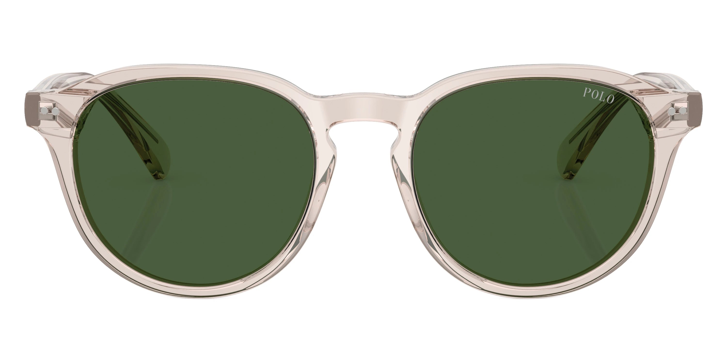 Shiny Transparent Light Taupe (611771) Sunglasses with Bottle Green lenses (PH4221F 611771 52) by POLO RALPH LAUREN™. Size: 52-19-145, Shape: Wayfarer, Material: Acetate.