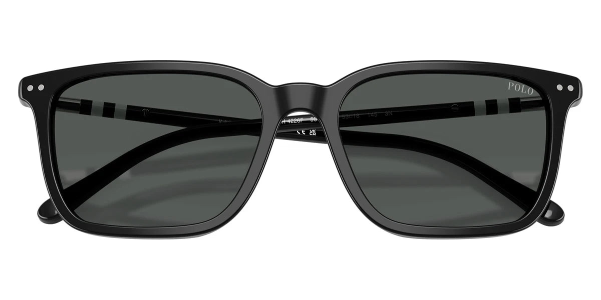 Shiny Black/White (500187) Sunglasses with Dark Gray lenses (PH4226F 500187 53) by POLO RALPH LAUREN™. Size: 53-18-145, Shape: Square, Material: Acetate and Metal.
