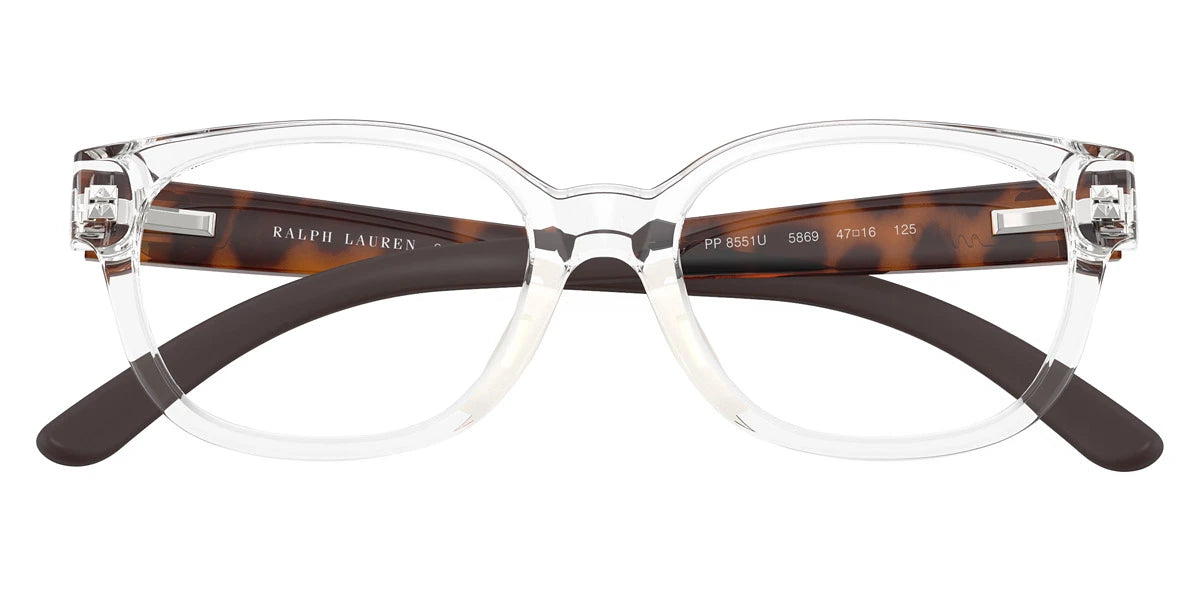 Shiny Transparent Pink/Beige (6266) Eyeglasses (PP8551U 6266 47) by POLO RALPH LAUREN™. Size: 47-16-125, Shape: Square, Material: Injected.