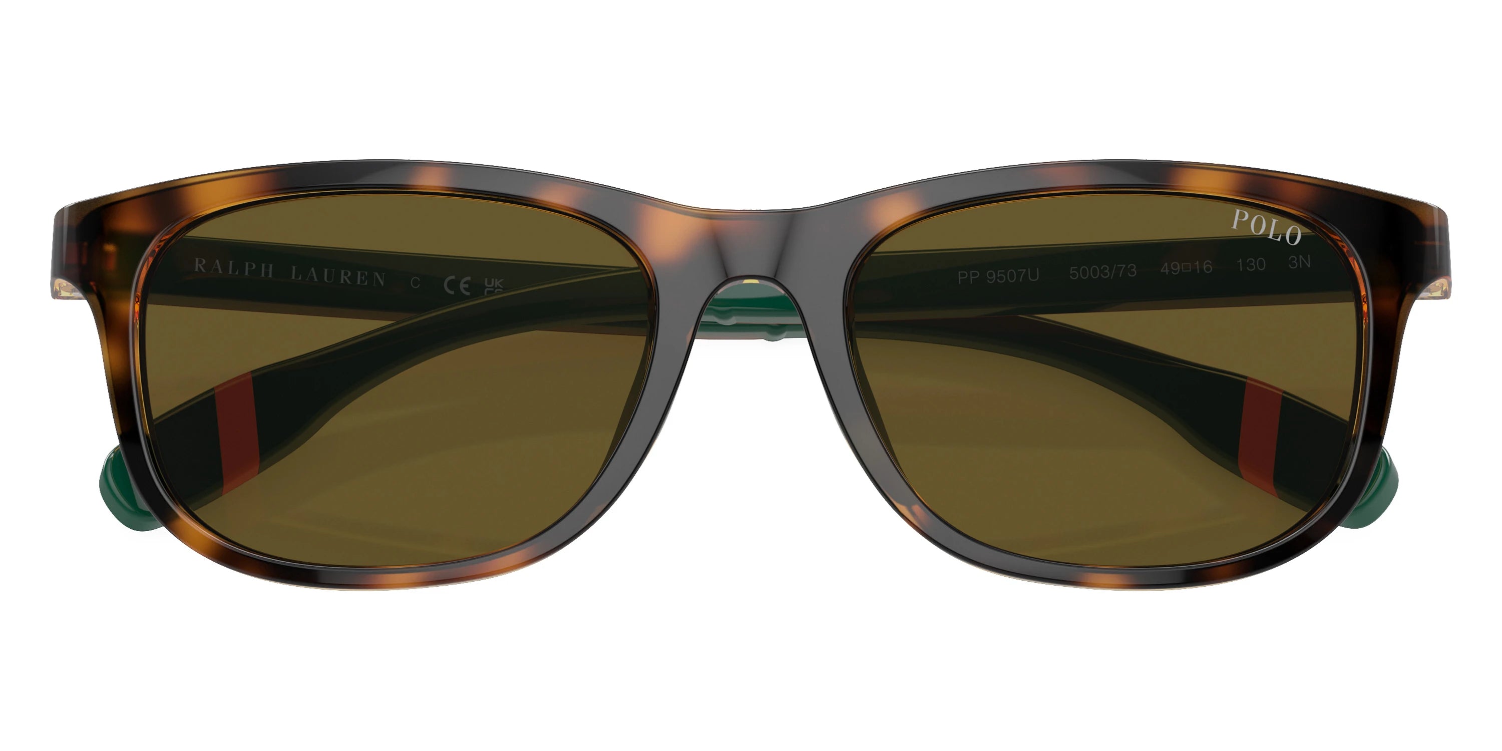 Shiny Havana/Orange (500373) Sunglasses with Olive Green lenses (PP9507U 500373 49) by POLO RALPH LAUREN™. Size: 49-16-130, Shape: Square, Material: Injected.