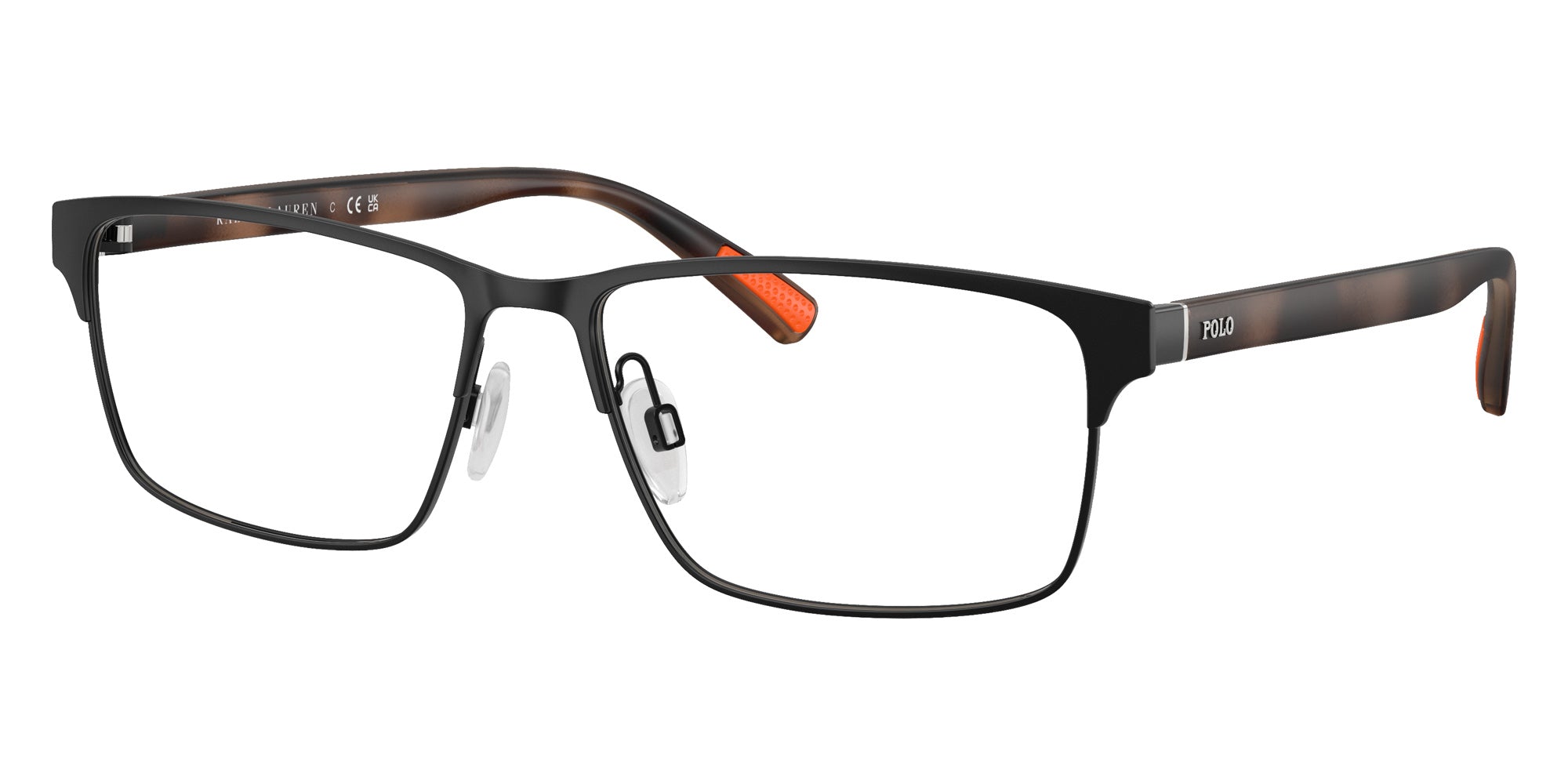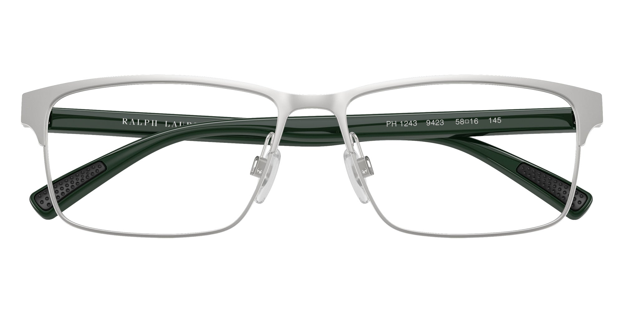 Semishiny Black (9267) Eyeglasses (PH1243 9267 56) by POLO RALPH LAUREN. Size: 56-16-145, Shape: Rectangle, Material: Metal and Injected.
