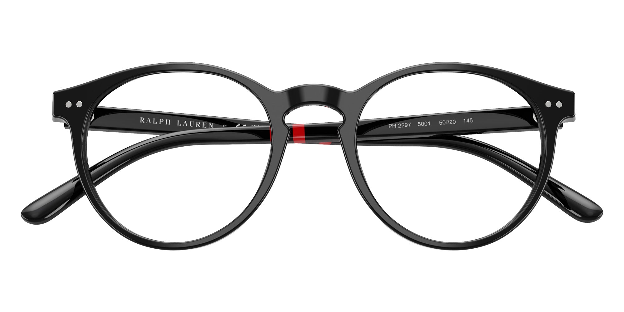 Shiny Black (5001) Eyeglasses (PH2297 5001 48) by POLO RALPH LAUREN. Size: 48-20-145, Shape: Round, Material: Acetate and Injected.