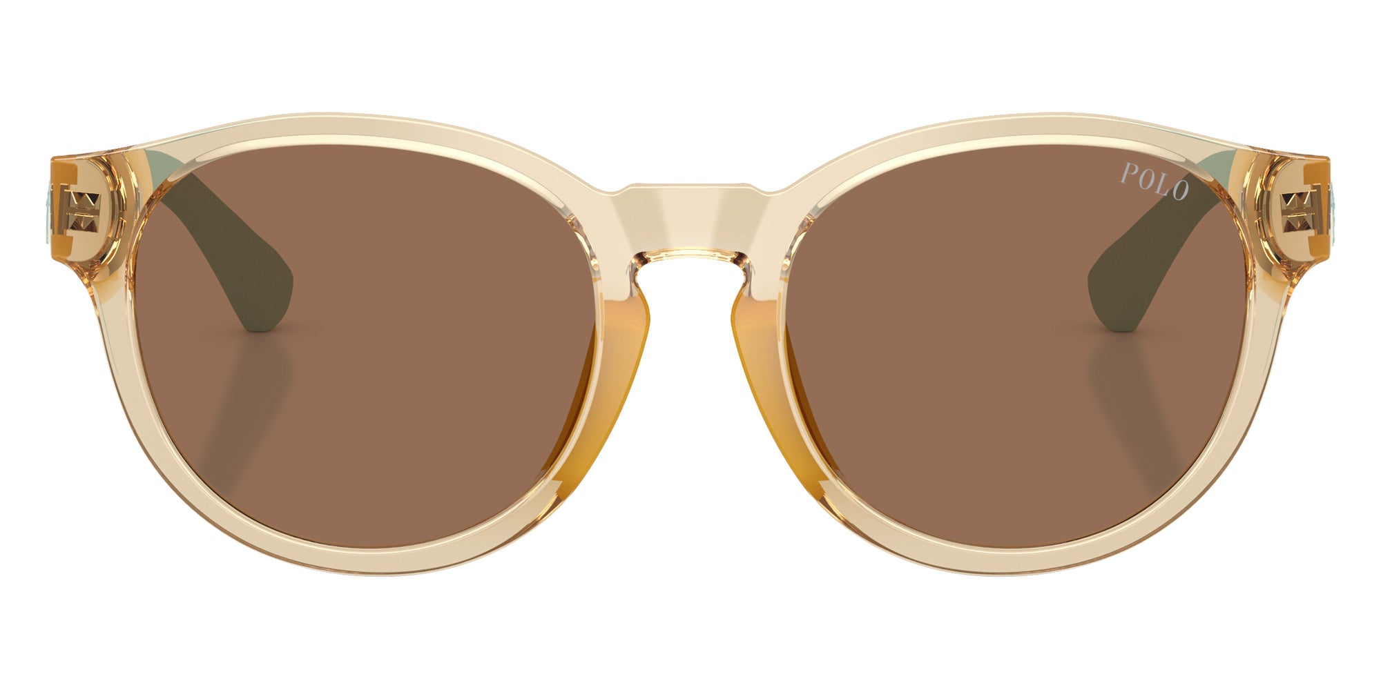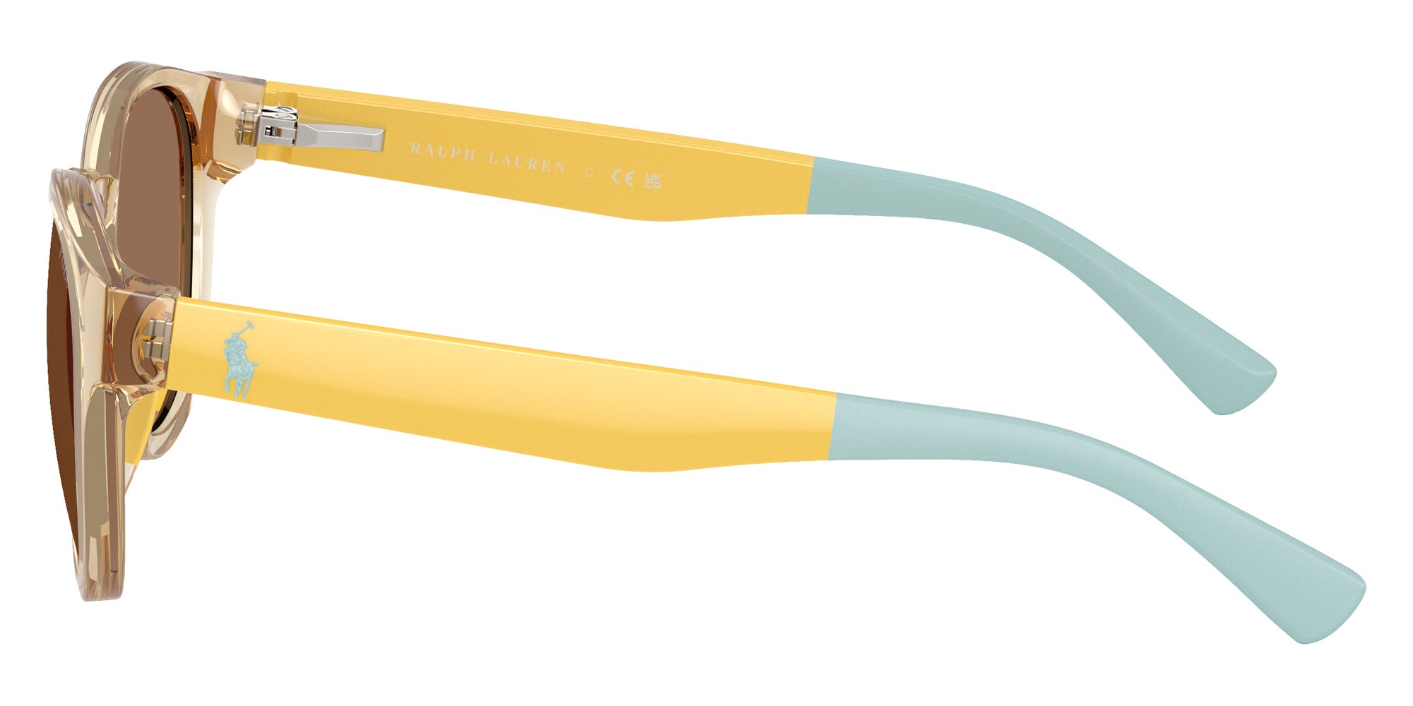 Shiny Transparent Light Yellow (575673) Sunglasses with Dark Brown lenses (PP9512U 575673 45) by POLO RALPH LAUREN. Size: 45-16-125, Shape: Wayfarer, Material: Injected.
