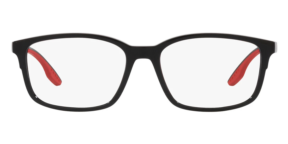 Black (1AB1O1) Eyeglasses (PS 01PV 1AB1O1 56) by Prada Linea Rossa. Size: 56-17-145, Shape: Square, Material: Plastic.
