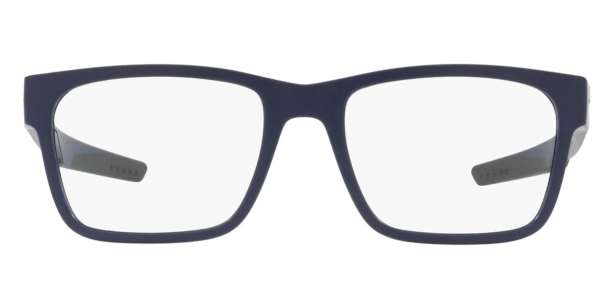 Matte Blue (TFY1O1) Eyeglasses (PS 02PV TFY1O1 55) by Prada Linea Rossa. Size: 55-19-140, Shape: Square, Material: Plastic.