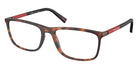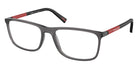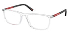 Crystal/Black Rubbered (2AZ1O1) Eyeglasses (PS 03QV 2AZ1O1 55) by Prada Linea Rossa. Size: 55-18-145, Shape: Rectangle, Material: Injected and Rubber.