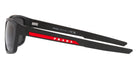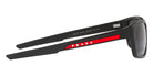 Matte Black (1BO06F) Sunglasses with Dark Gray lenses (PS 04YS 1BO06F 57) by Prada Linea Rossa. Size: 57-18-140, Shape: Irregular, Material: Plastic.