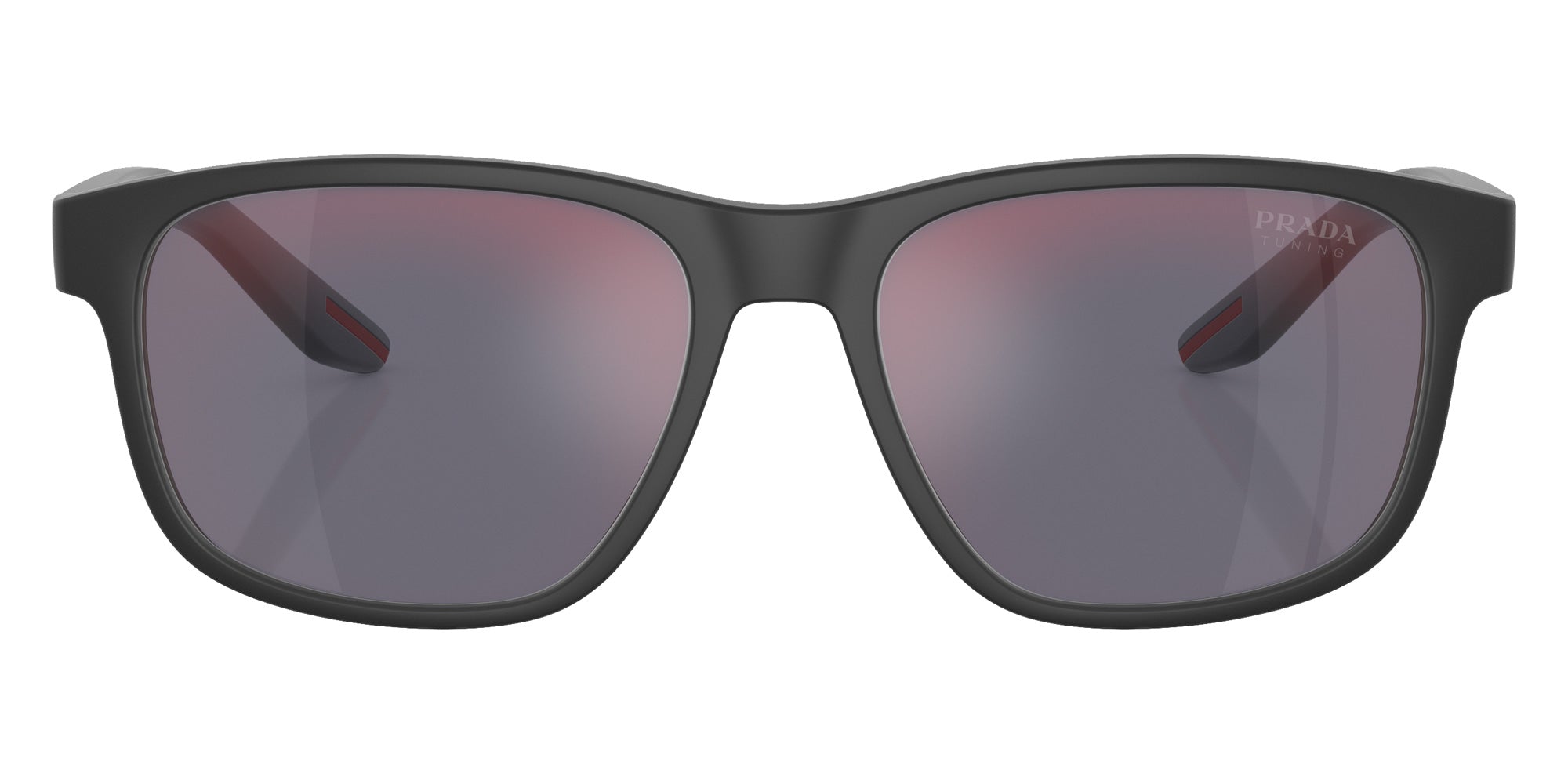 Matte Black (1BO10J) Sunglasses with Dark Blue Mirrored Violet lenses (PS 06YS 1BO10J 56) by Prada Linea Rossa. Size: 56-17-145, Shape: Square, Material: Injected and Nylon.