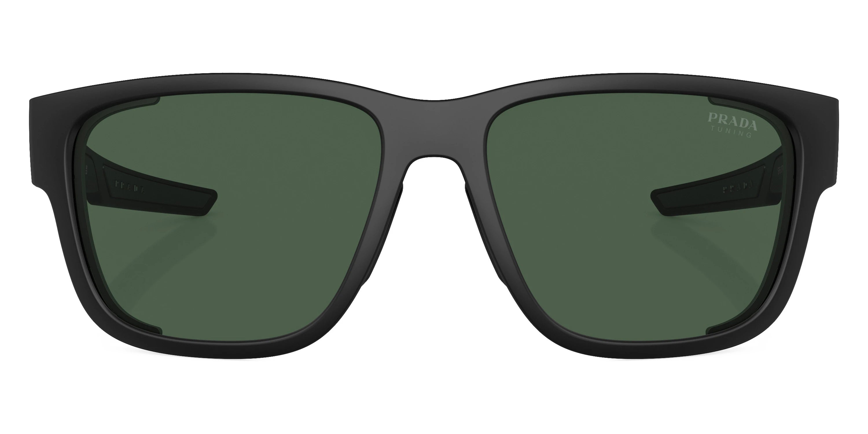 Matte Black (1BO06U) Sunglasses with Dark Green lenses (PS 07WS 1BO06U 59) by Prada Linea Rossa. Size: 59-17-130, Shape: Square, Material: Nylon and Metal.