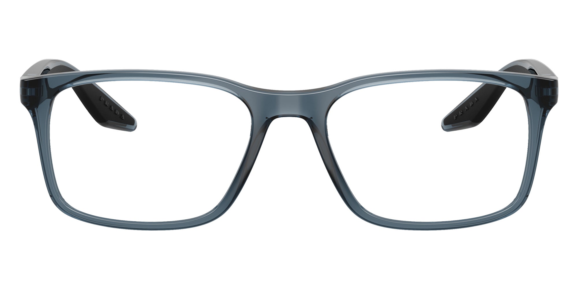 Crystal/Black Rubber (2AZ1O1) Eyeglasses (PS 08RV 2AZ1O1 52) by Prada Linea Rossa. Size: 52-18-145, Shape: Square, Material: Injected and Nylon.