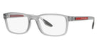 Gray Transparent (14C1O1) Eyeglasses (PS 09OV 14C1O1 55) by Prada Linea Rossa. Size: 55-19-145, Shape: Square, Material: Plastic.