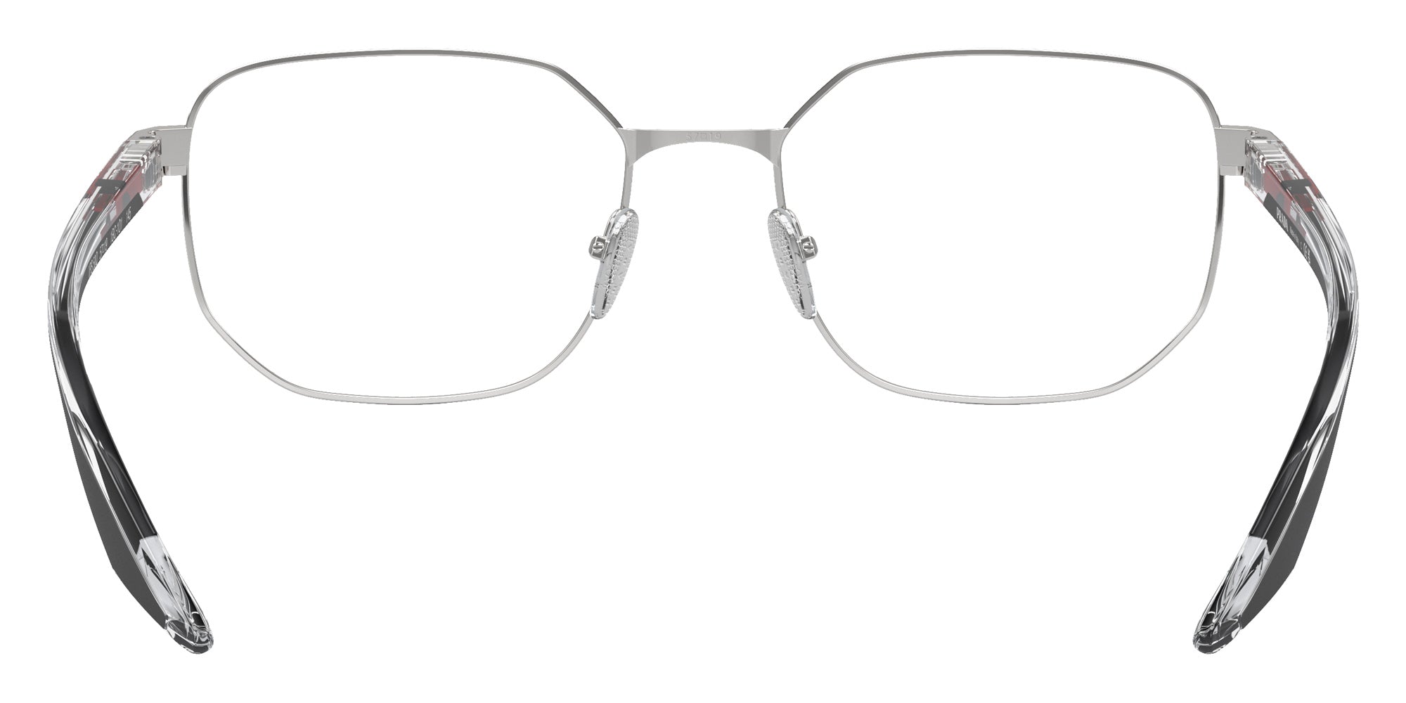 Silver (1BC1O1) Eyeglasses (PS 50QV 1BC1O1 55) by Prada Linea Rossa. Size: 55-19-145, Shape: Irregular, Material: Metal and Injected.