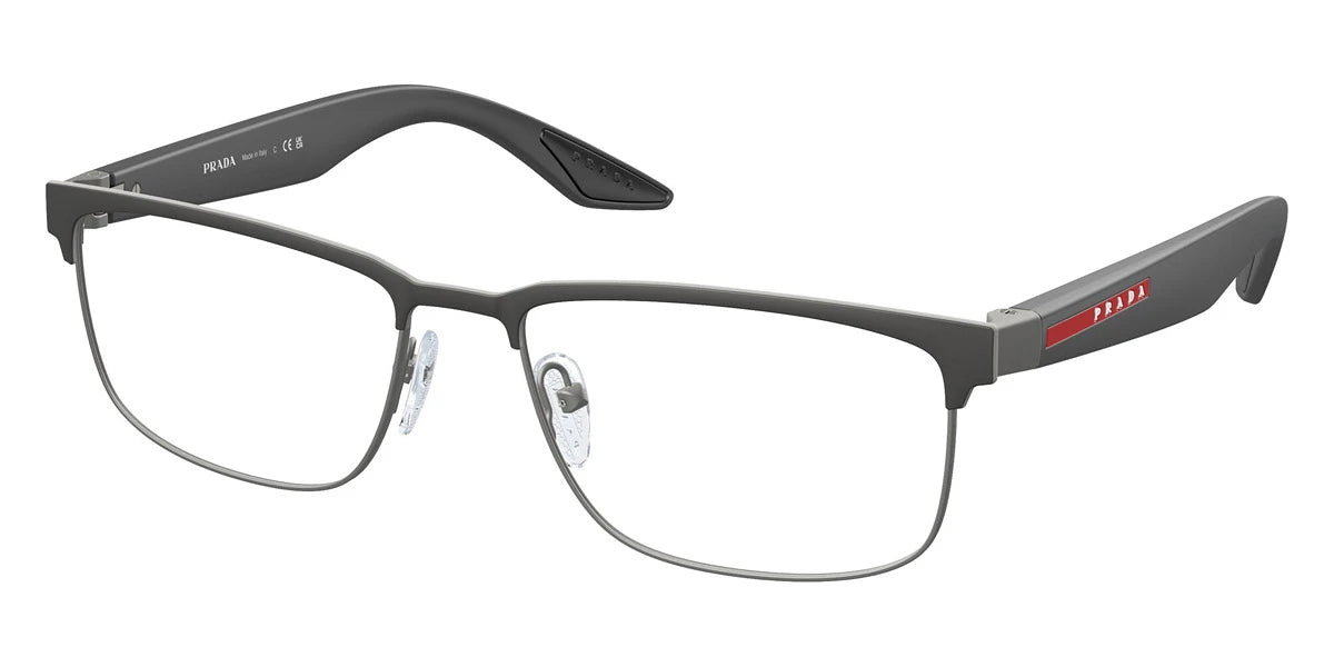 Gray Rubber (06P1O1) Eyeglasses (PS 51PV 06P1O1 56) by Prada Linea Rossa. Size: 56-17-145, Shape: Rectangle, Material: Metal and Molded.