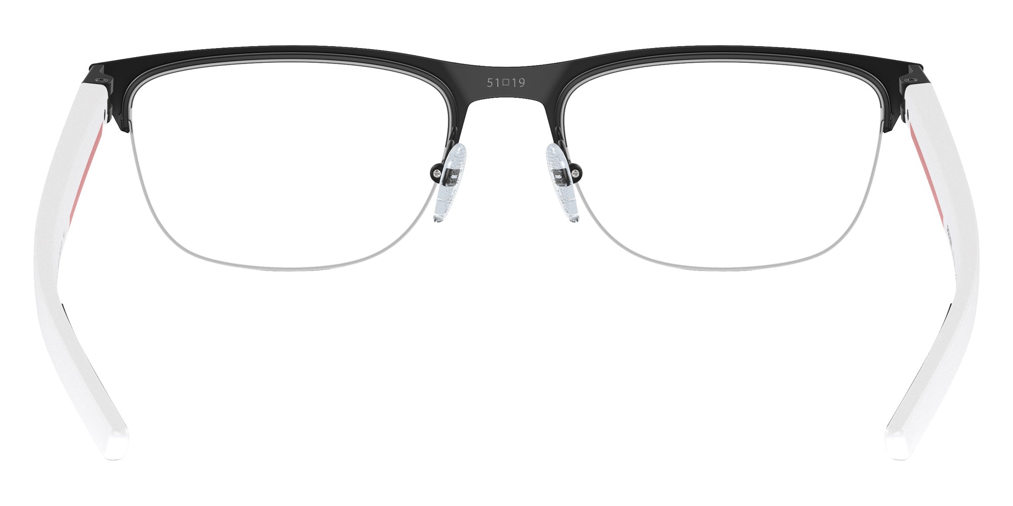 Black Rubber (DG01O1) Eyeglasses (PS 51QV DG01O1 57) by Prada Linea Rossa. Size: 57-19-145, Shape: Irregular, Material: Metal and Injected.