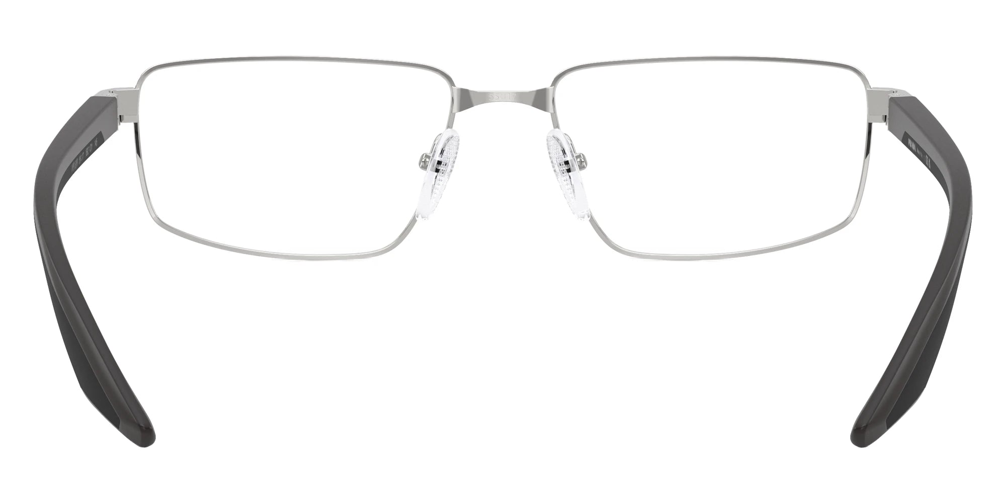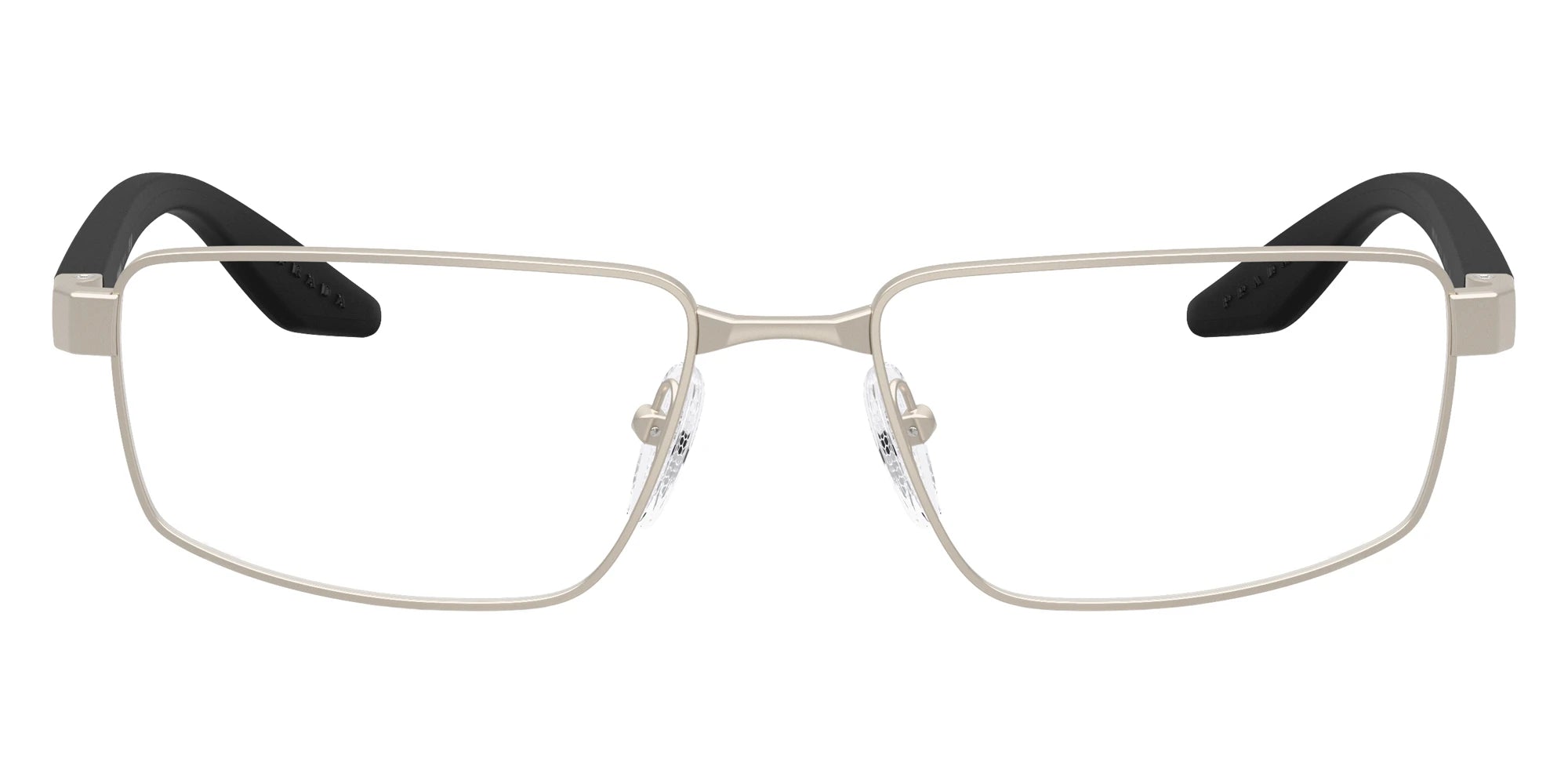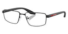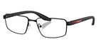 Black/Black Rubber/Matte Champagne (18X1O1) Eyeglasses (PS 52RV 18X1O1 57) by Prada Linea Rossa. Size: 57-17-145, Shape: Rectangle, Material: Metal and Nylon.