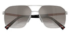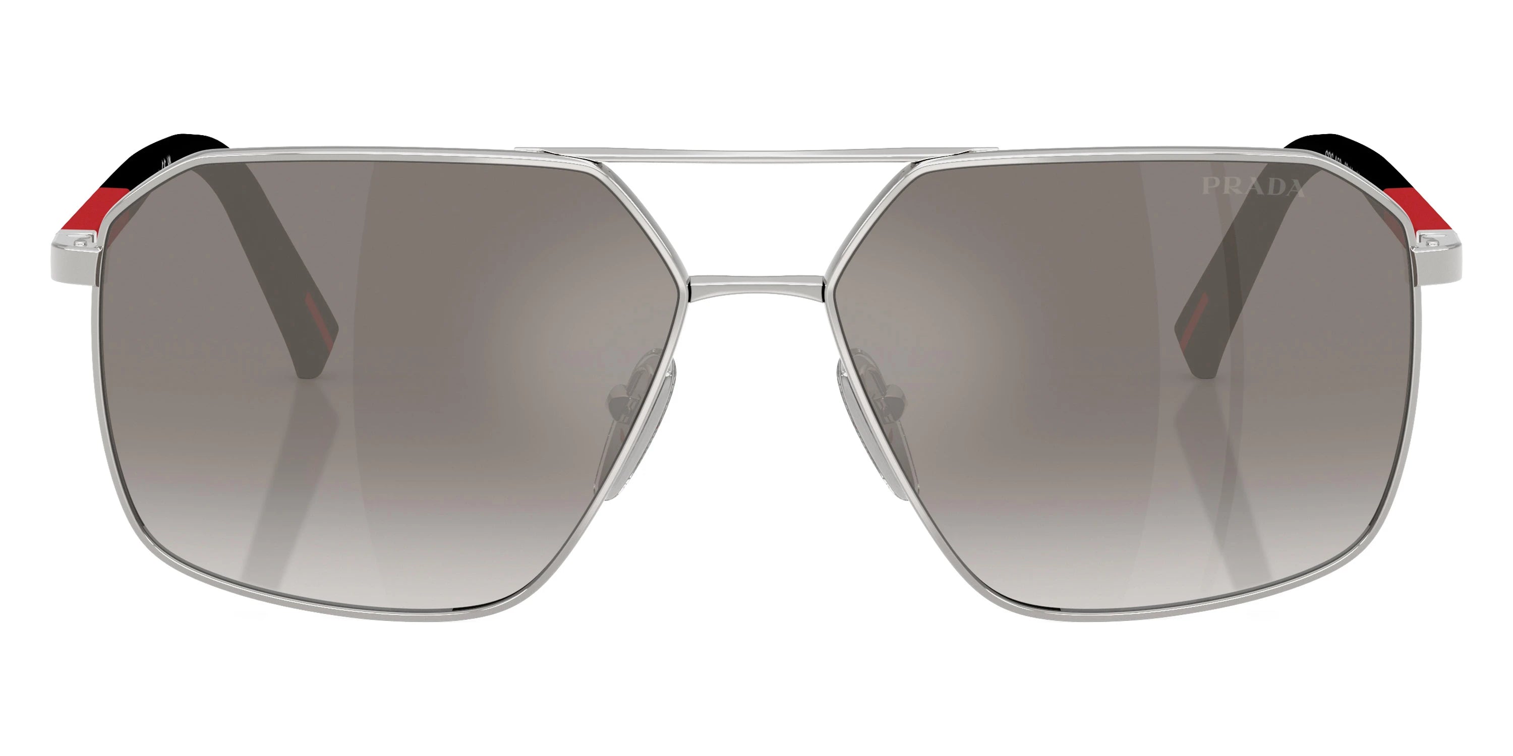 Gunmetal/Black Rubber (5AV09U) Sunglasses with Gray Gradient lenses (PS A50S 5AV09U 60) by Prada Linea Rossa. Size: 60-14-145, Shape: Irregular, Material: Metal.