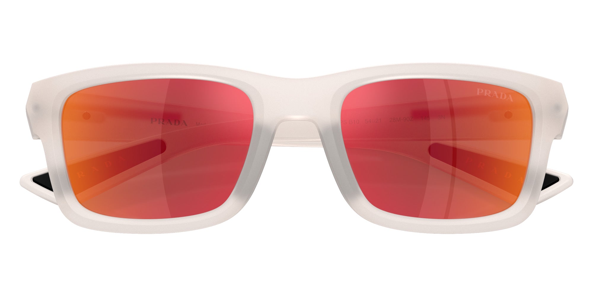 Frosted Crystal (28M90Z) Sunglasses with Brown Mirrored Orange lenses (PS B10S 28M90Z 54) by Prada Linea Rossa. Size: 54-21-145, Shape: Irregular, Material: Injected and Nylon.