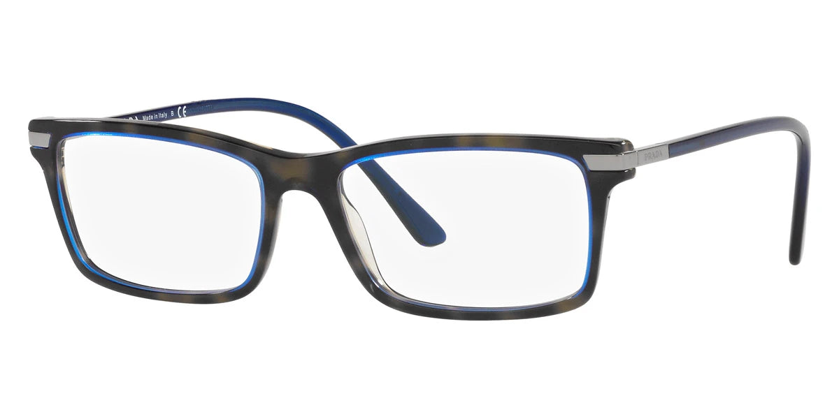 PR 03YV Eyeglasses by Prada. The rectangle shape design feature a full rim plastic frame. This model is available in ten different color combinations and sizes. Prada is a synonym for style. It is one of the few brands which anticipates aesthetic trends and dictates its own rules in the fashion market.The brand stands apart with all products from clothing to eyewear which are always in vogue. Prada eyeglasses are elegant, fashion-forward and impossibly chic. The brand annually pleases its fans with new eyewear collections which highlight the personality and style of the prominent fashion house. Millions of fashionistas dream of Prada eyeglasses featuring graceful shapes, excellent fit and comfortable wearing.
