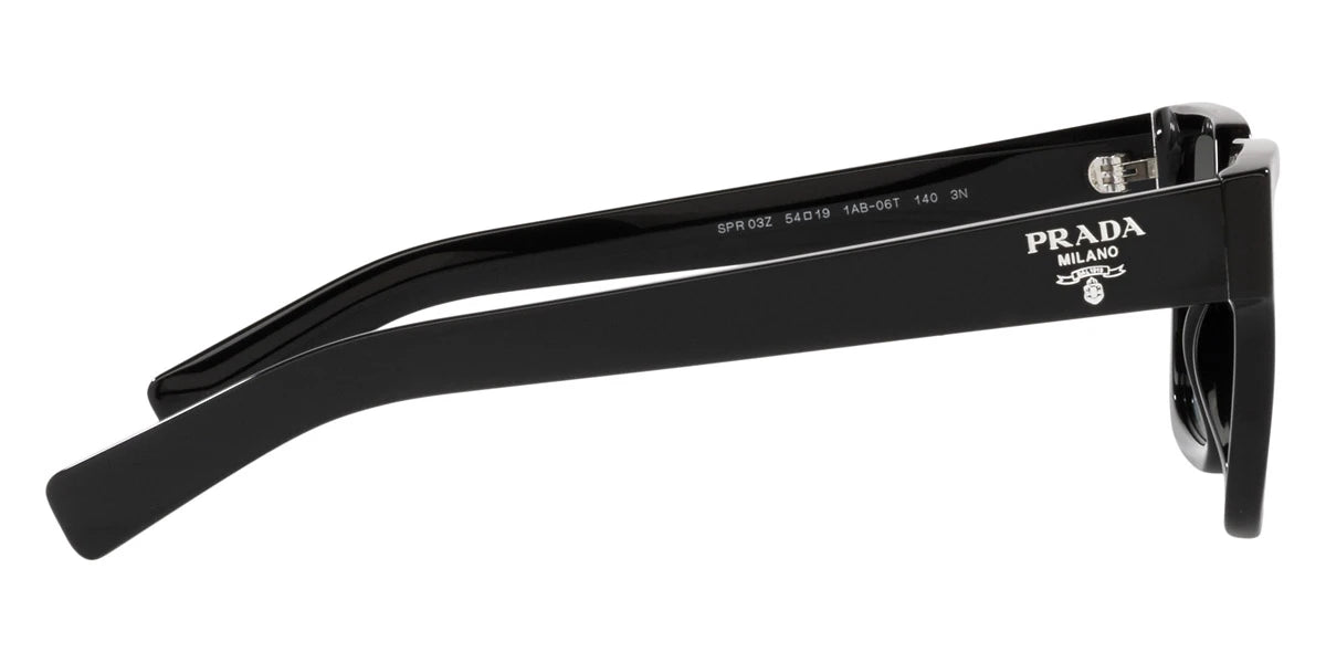 Black (1AB06T) Sunglasses with Gray Gradient Vintage lenses (PR 03ZS 1AB06T 54) by Prada. Size: 54-19-140, Shape: Square, Material: Plastic.