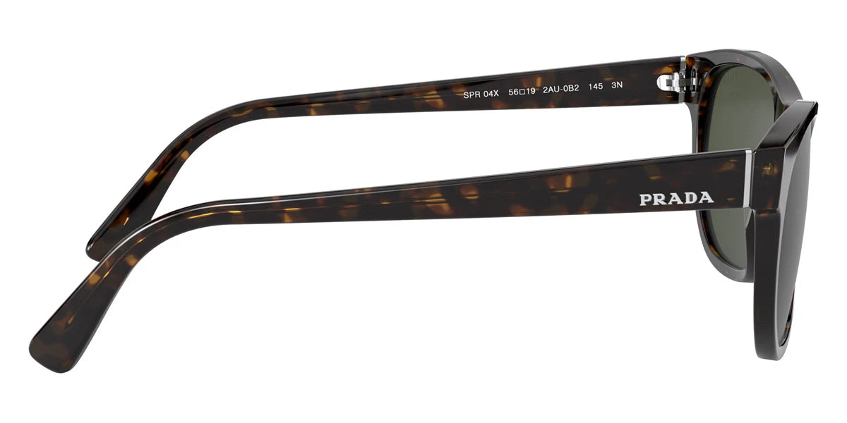 Havana (2AU0B2) Sunglasses with Green lenses (PR 04XS 2AU0B2 56) by Prada. Size: 56-19-145, Shape: Rectangle, Material: Plastic.