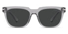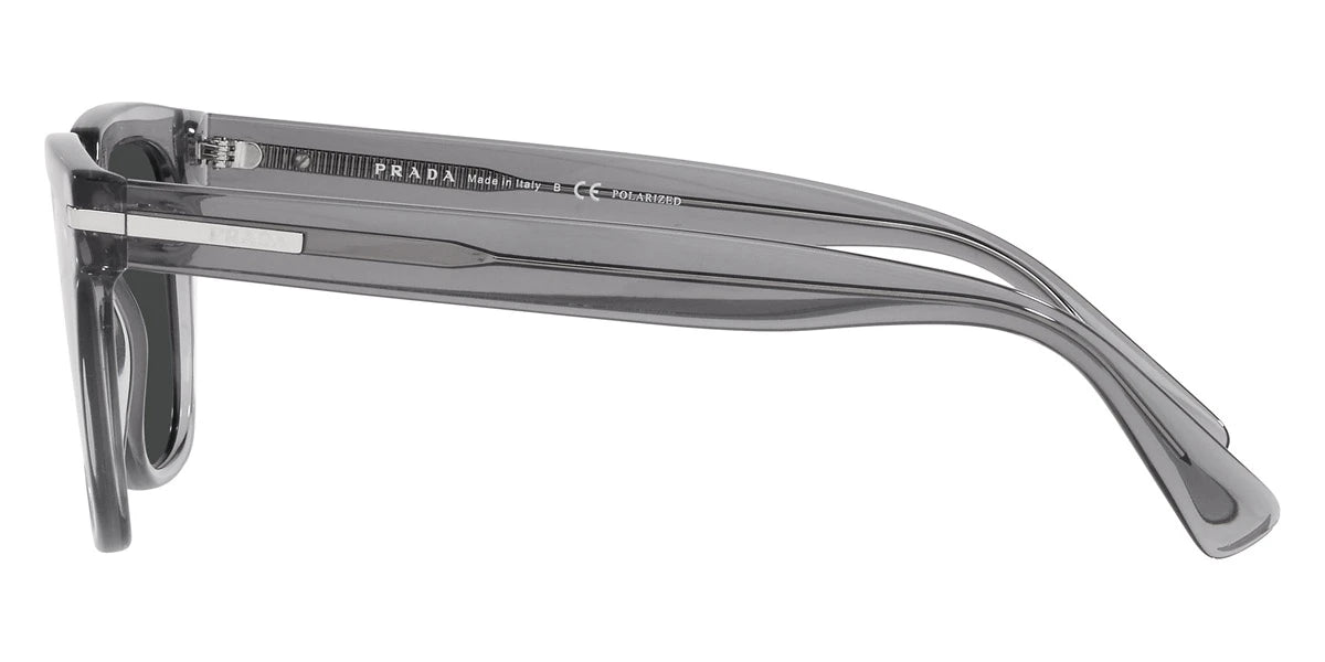 Transparent Gray (08U08G) Sunglasses with Polarized Black lenses (PR 04YS 08U08G 56) by Prada. Size: 56-19-150, Shape: Square, Material: Plastic.