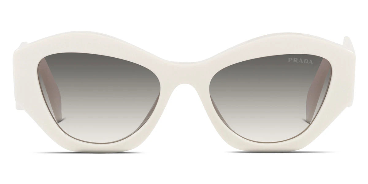 White (142130) Sunglasses with Gray Gradient lenses (Symbole PR 07YSF 142130 55) by Prada. Size: 55-18-145, Shape: Irregular, Material: Plastic.