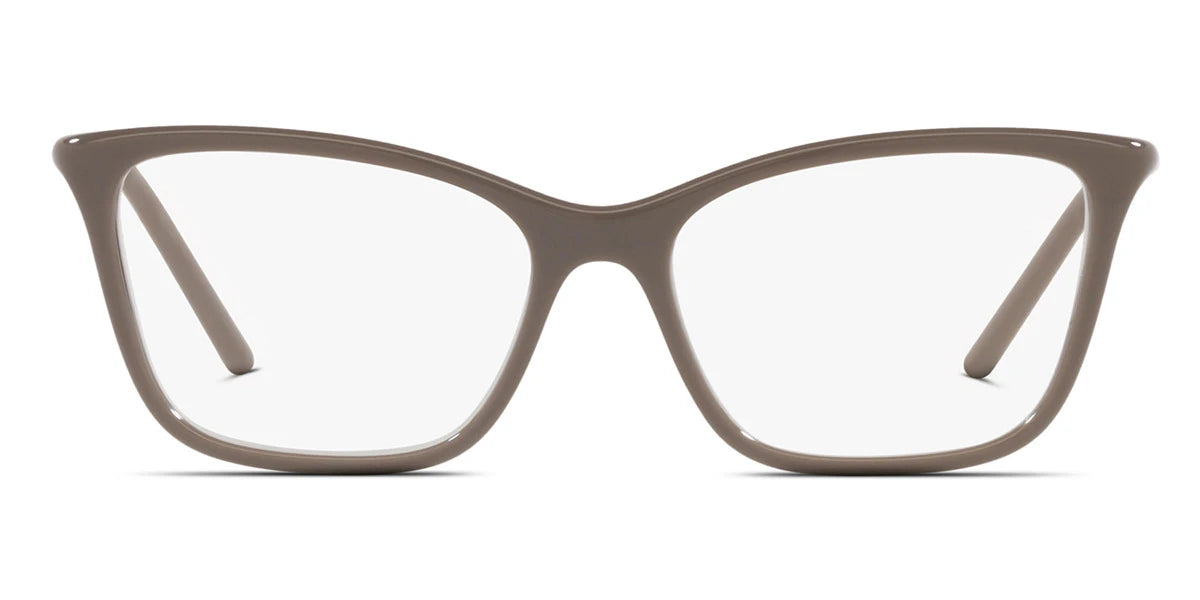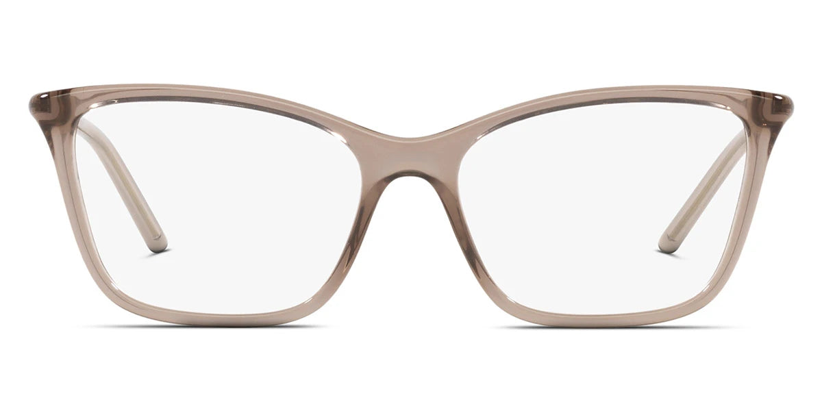 Light Brown (05N1O1) Eyeglasses (PR 08WV 05N1O1 55) by Prada. Size: 55-16-140, Shape: Cat-Eye, Material: Plastic.