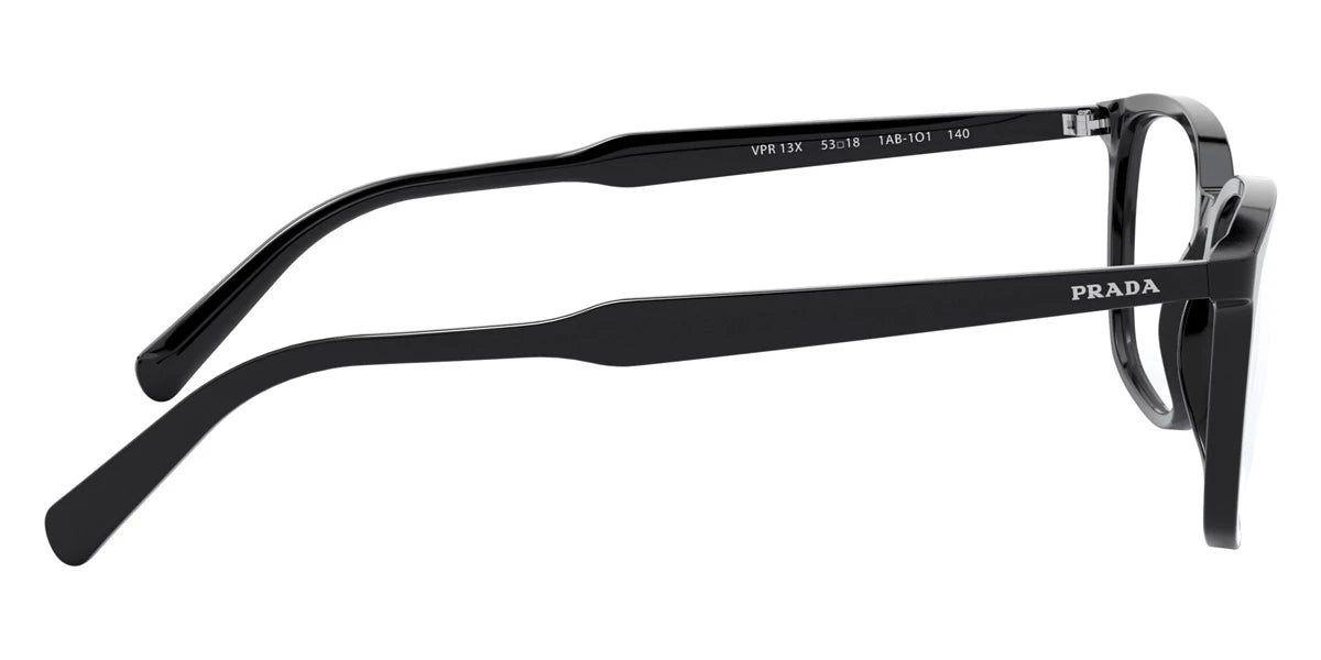 Black (1AB1O1) Eyeglasses (PR 13XV 1AB1O1 55) by Prada. Size: 55-18-145, Shape: Square, Material: Plastic.