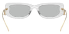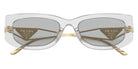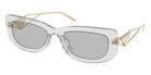 Transparent Gray/Pale Gold (12R50K) Sunglasses with Light Gray lenses (PR 14YS 12R50K 53) by Prada. Size: 53-19-140, Shape: Rectangle, Material: Acetate and Metal.