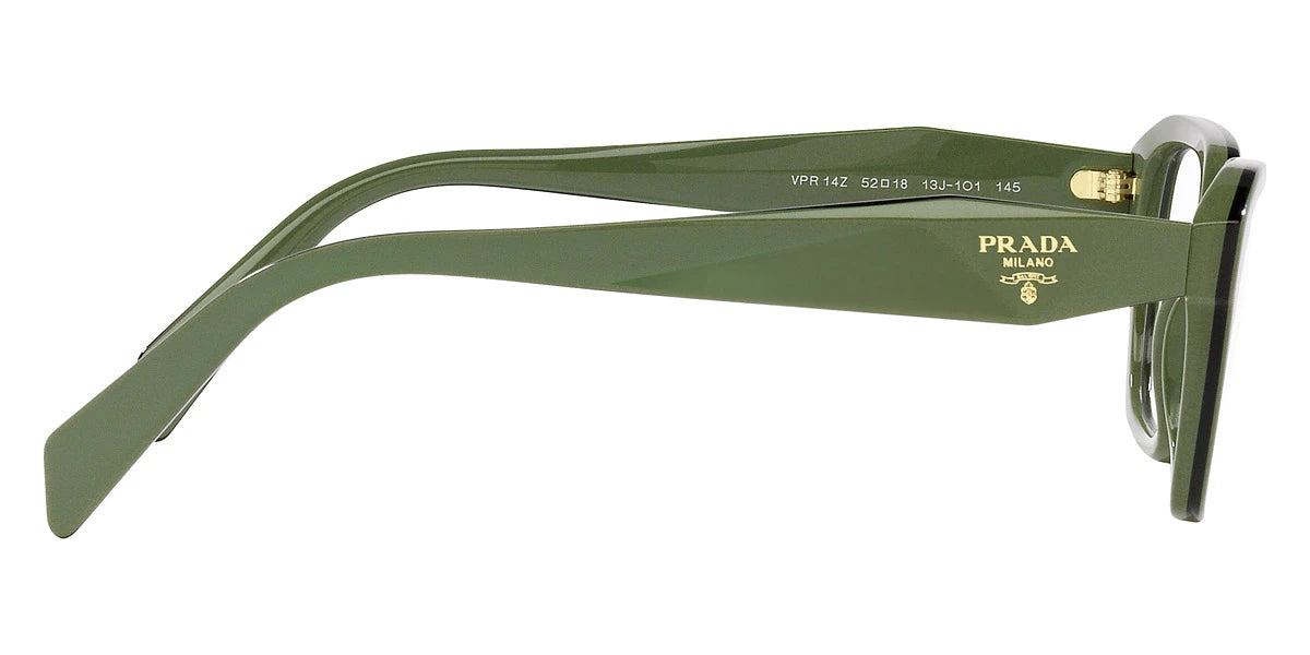 PR 14ZV Eyeglasses by Prada. The irregular shape design feature a full rim acetate frame. This model is available in ten different color combinations and sizes. Prada is a synonym for style. It is one of the few brands which anticipates aesthetic trends and dictates its own rules in the fashion market.The brand stands apart with all products from clothing to eyewear which are always in vogue. Prada eyeglasses are elegant, fashion-forward and impossibly chic. The brand annually pleases its fans with new eyewear collections which highlight the personality and style of the prominent fashion house. Millions of fashionistas dream of Prada eyeglasses featuring graceful shapes, excellent fit and comfortable wearing.