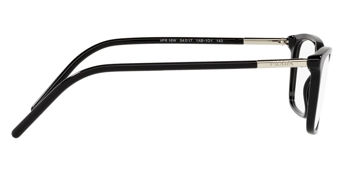 Black (1AB1O1) Eyeglasses (PR 16WVF 1AB1O1 54) by Prada. Size: 54-17-140, Shape: Rectangle, Material: Plastic.