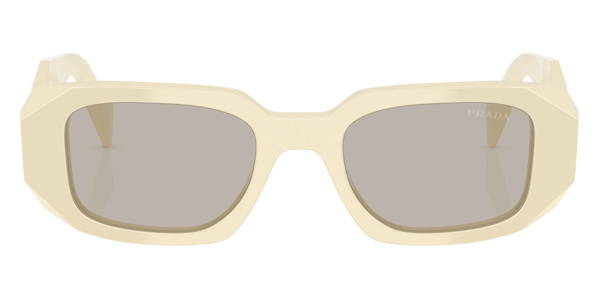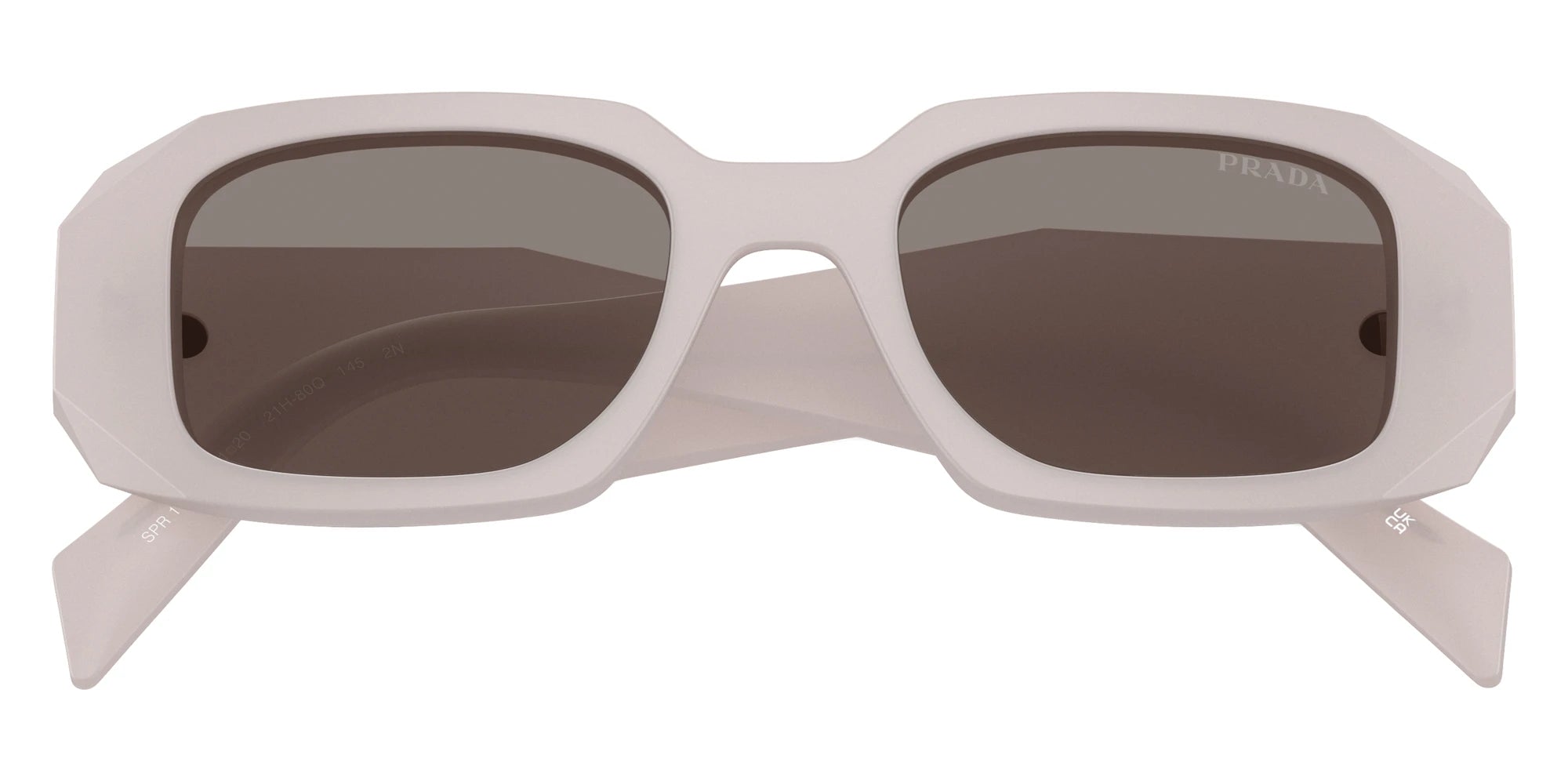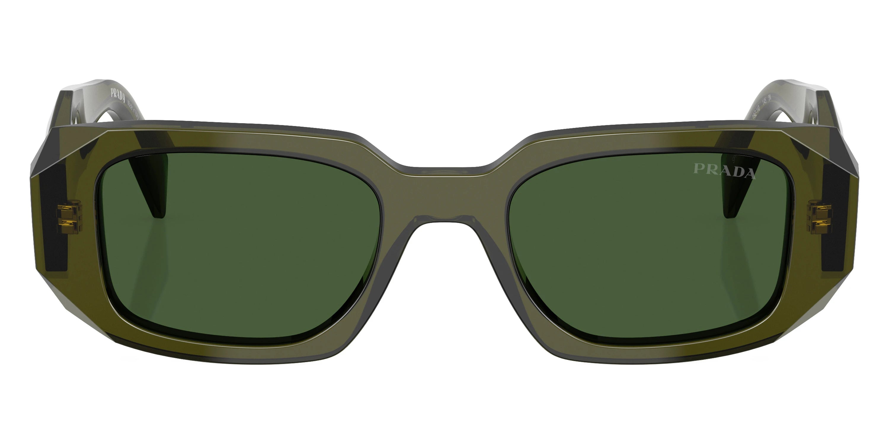 Symbole PR 17WSF Sunglasses by Prada. The rectangle shape design features a full rim plastic frame. This model is available in four different color combinations and sizes. Having deep roots, centenary experience and family traditions the house of Prada is synonymous with cutting-edge Italian fashion and artistry. Prada's sunglasses are among the most demanded due to their stylish impeccable design, distinctive looks, and timeless appeal. People who are quite sophisticated in fashion will appreciate the high quality and innovative design of the frames from Prada. Light modern materials, including cellulose acetate, clean geometrical lines, noble laconic finishes - these are all signs of the unique Prada style, interpreted by the masters of optical design.