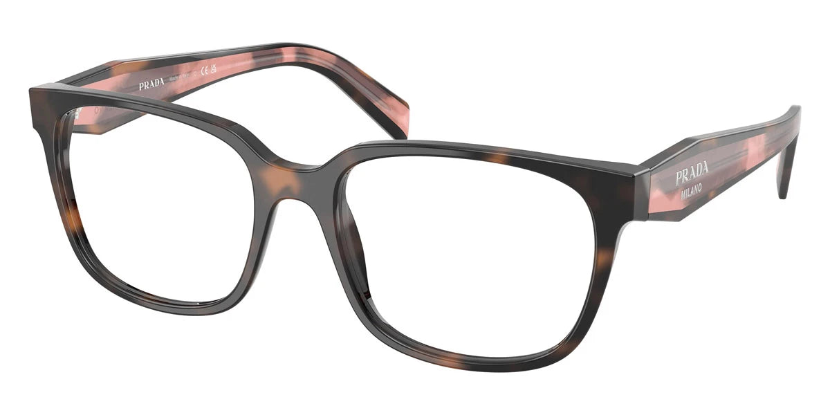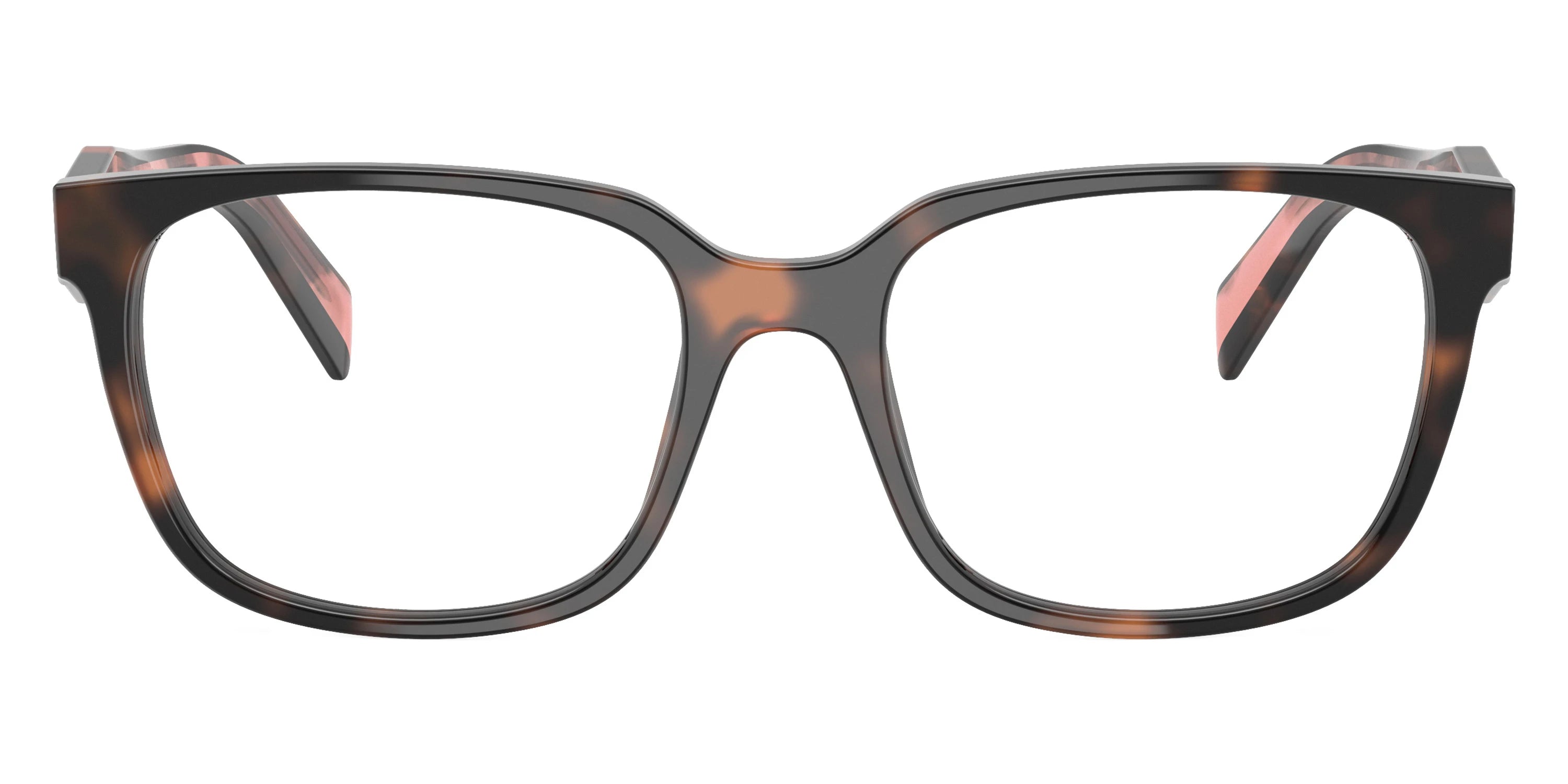 Caramel Havana (07R1O1) Eyeglasses (PR 17ZVF 07R1O1 55) by Prada. Size: 55-17-140, Shape: Rectangle, Material: Acetate.
