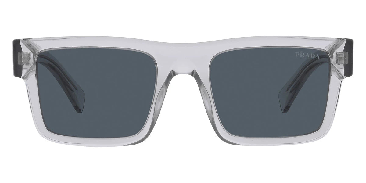 Crystal Gray (U4309T) Sunglasses with Dark Gray lenses (Symbole PR 19WS U4309T 52) by Prada. Size: 52-21-145, Shape: Rectangle, Material: Acetate.