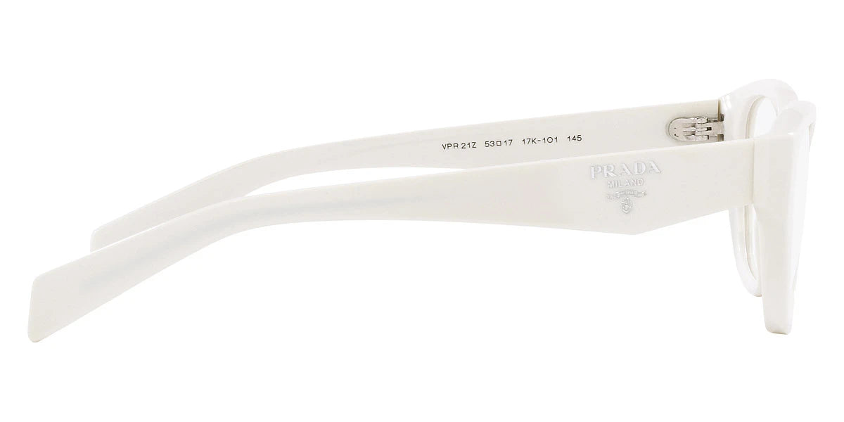 PR 21ZVF Eyeglasses by Prada. The irregular shape design feature a full rim acetate frame. This model is available in four different color combinations and sizes. Prada is a synonym for style. It is one of the few brands which anticipates aesthetic trends and dictates its own rules in the fashion market.The brand stands apart with all products from clothing to eyewear which are always in vogue. Prada eyeglasses are elegant, fashion-forward and impossibly chic. The brand annually pleases its fans with new eyewear collections which highlight the personality and style of the prominent fashion house. Millions of fashionistas dream of Prada eyeglasses featuring graceful shapes, excellent fit and comfortable wearing.