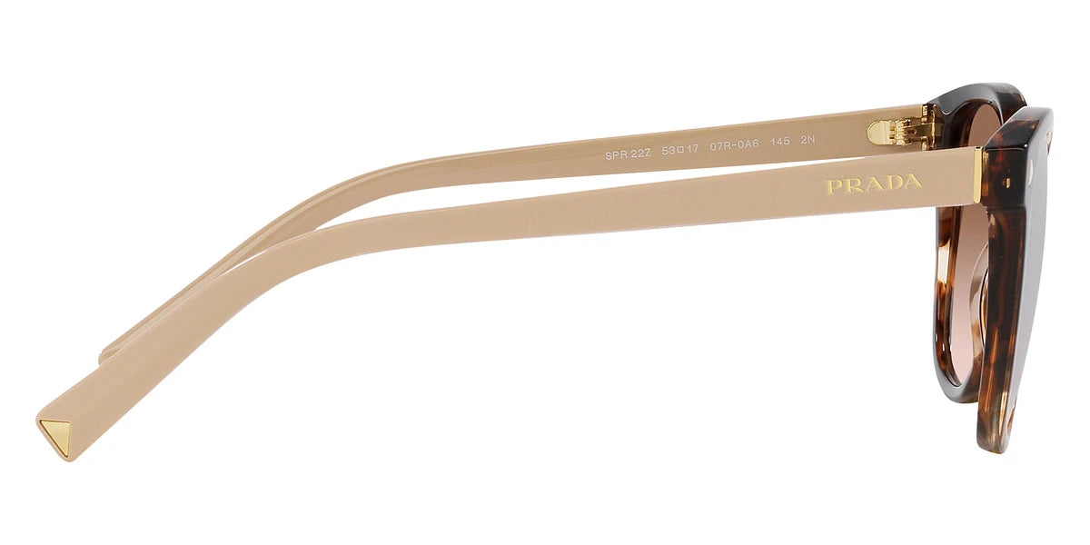 Caramel Tortoise (07R0A6) Sunglasses with Brown Gradient lenses (PR 22ZSF 07R0A6 55) by Prada. Size: 55-16-145, Shape: Square, Material: Acetate.