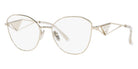 Pale Gold (ZVN1O1) Eyeglasses (PR 52ZV ZVN1O1 53) by Prada. Size: 53-18-140, Shape: Irregular, Material: Metal.
