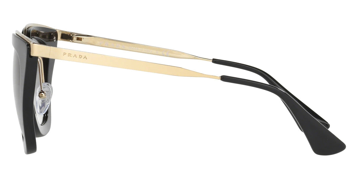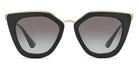 Black (1AB0A7) Sunglasses with Gray Gradient lenses (PR 53SS 1AB0A7 52) by Prada. Size: 52-21-140, Shape: Oversized / Cat-Eye, Material: Metal.