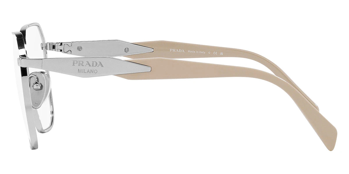 Silver (1BC1O1) Eyeglasses (PR 56ZV 1BC1O1 53) by Prada. Size: 53-18-140, Shape: Square, Material: Metal.