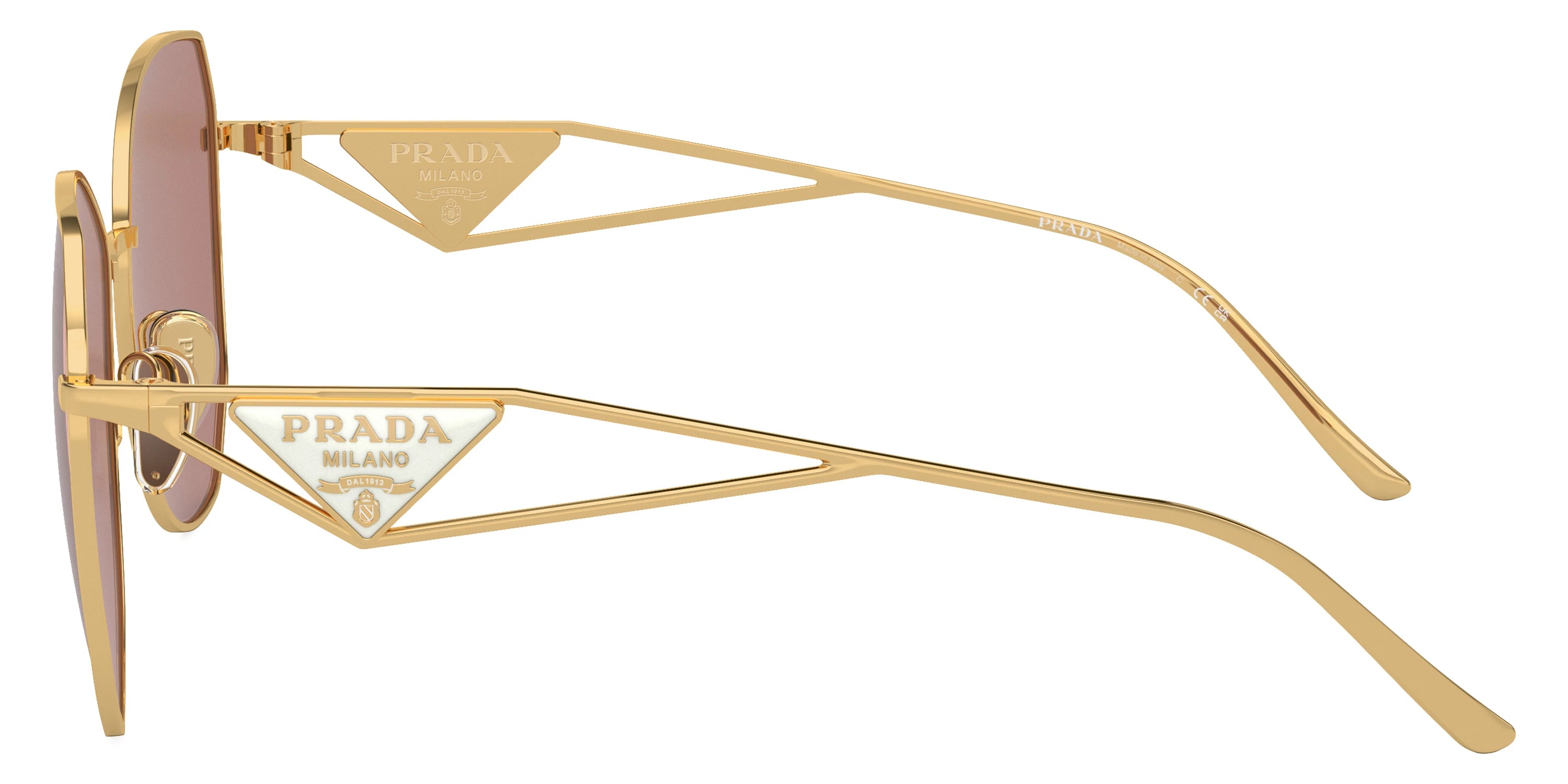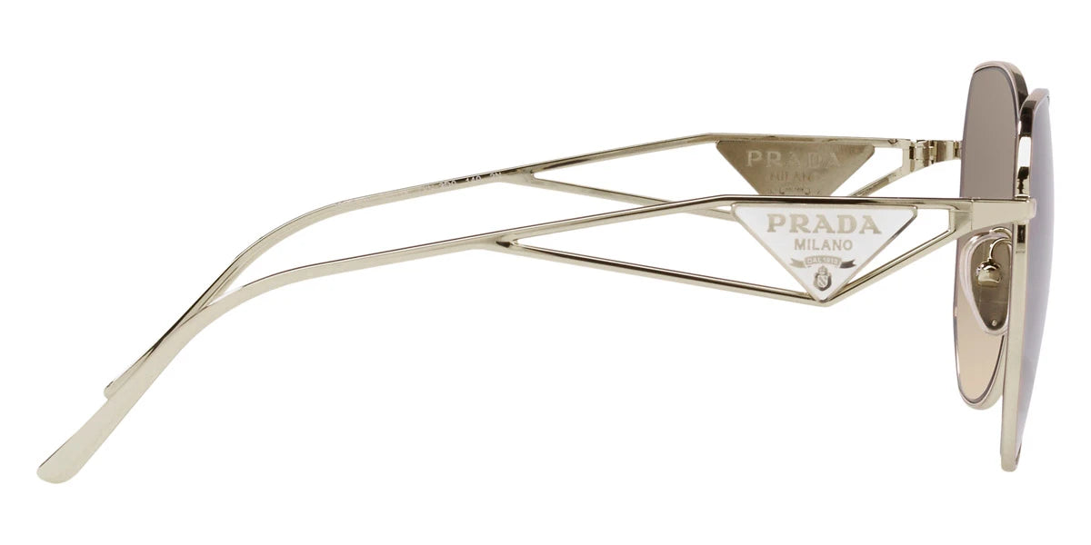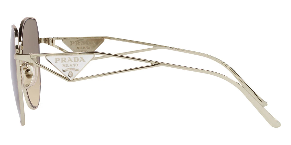 Gold (5AK10D) Sunglasses with Light Brown lenses (PR 57YS 5AK10D 57) by Prada. Size: 57-18-140, Shape: Irregular, Material: Metal.