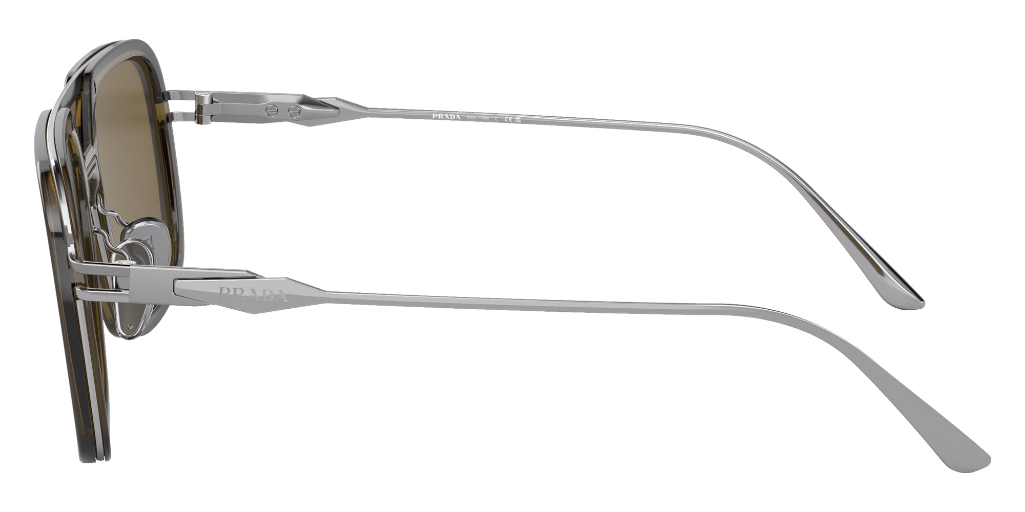 Transparent Graphite (19F09T) Sunglasses with Dark Gray lenses (PR 57ZS 19F09T 55) by Prada. Size: 55-19-140, Shape: Square, Material: Metal.
