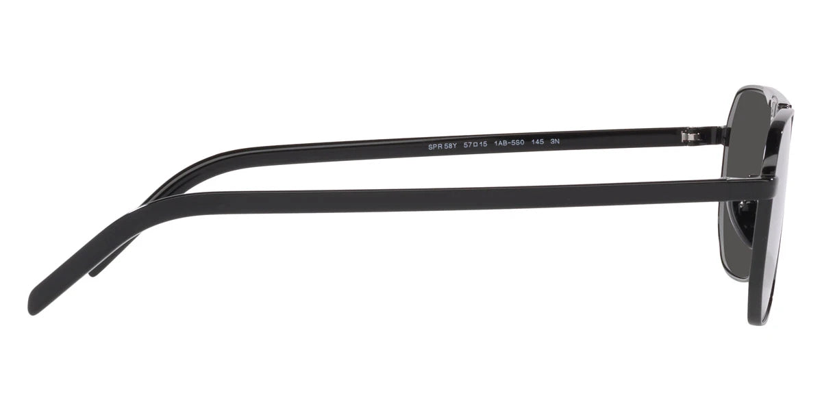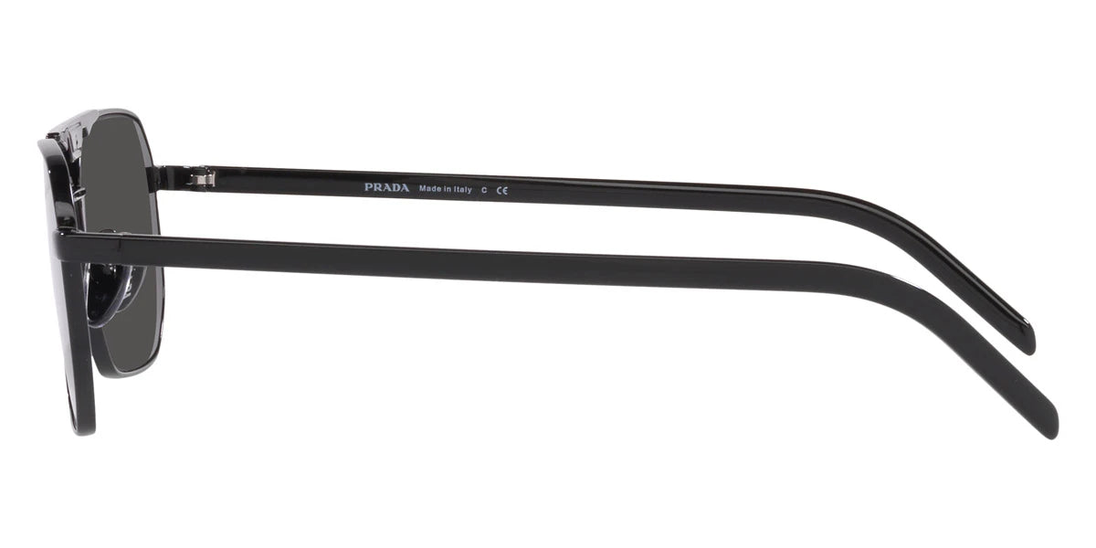 Black (1AB5S0) Sunglasses with Dark Gray lenses (PR 58YS 1AB5S0 57) by Prada. Size: 57-15-145, Shape: Rectangle, Material: Metal.