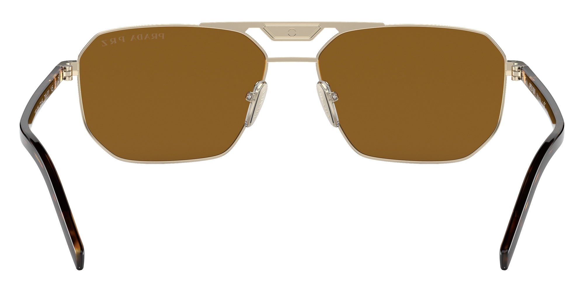 Pale Gold (ZVN5Y1) Sunglasses (PR 58YS ZVN5Y1 57) by Prada. Size: 57-15-145, Shape: Rectangle, Material: Metal and Acetate.