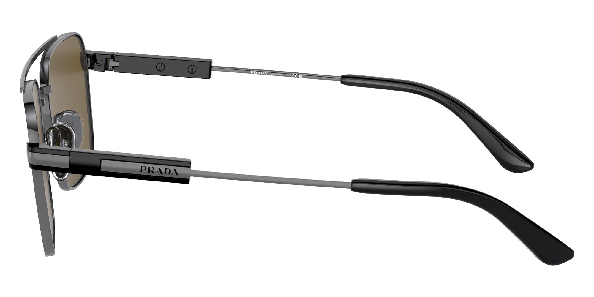 Gunmetal (5AV01T) Sunglasses (PR 67ZS 5AV01T 56) by Prada. Size: 56-18-145, Shape: Square, Material: Metal.