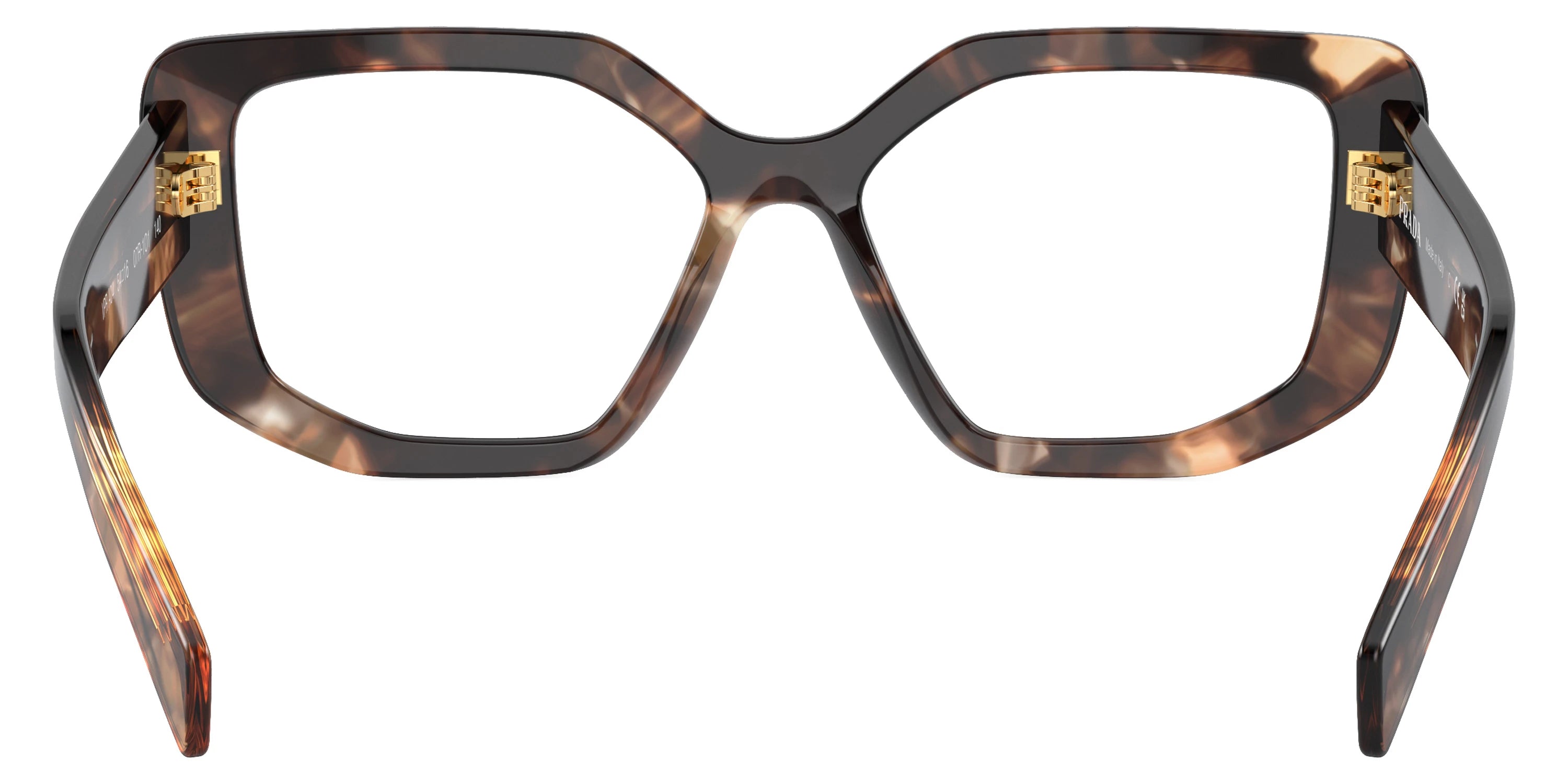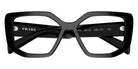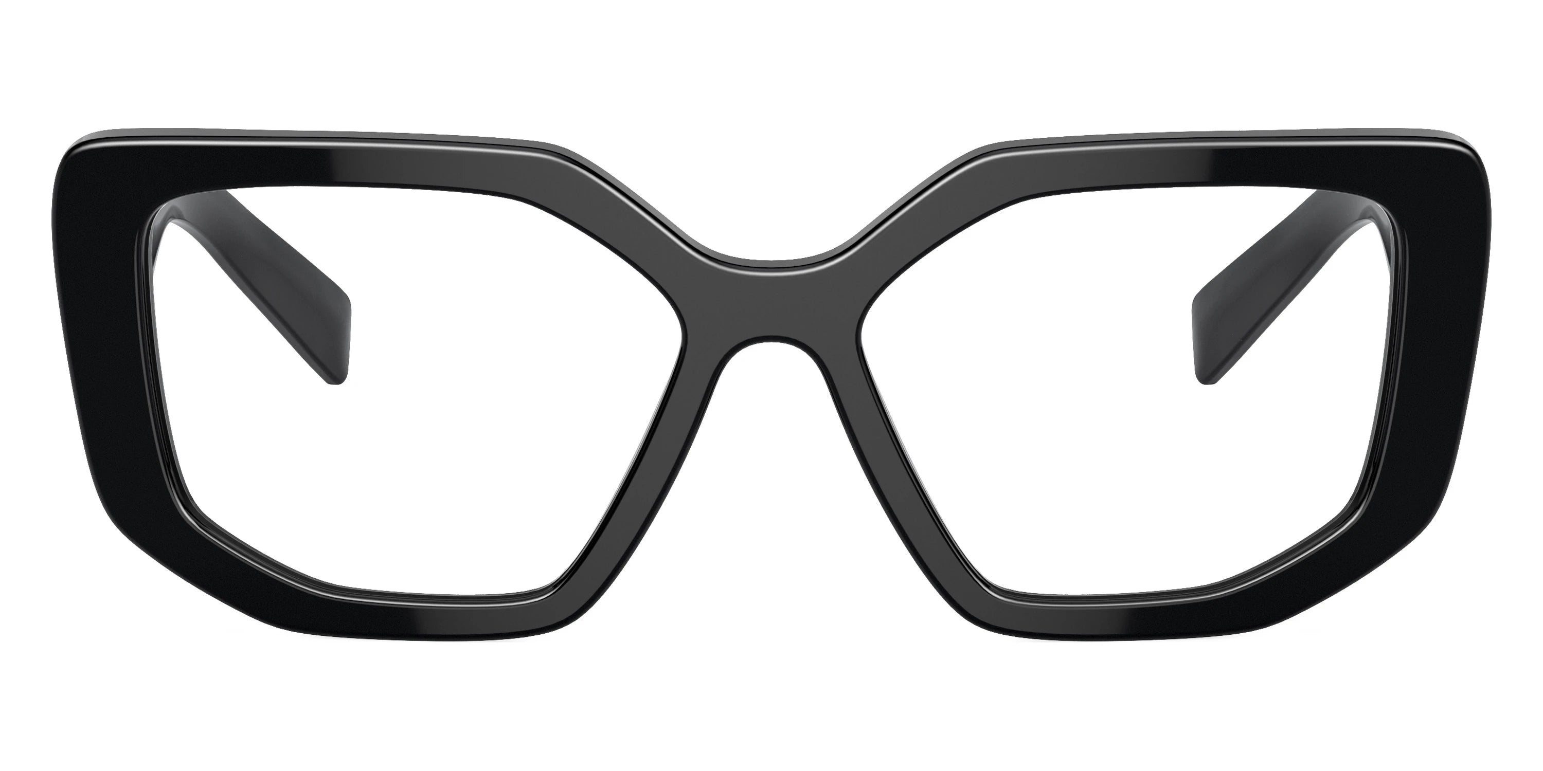 Black (1AB1O1) Eyeglasses (PR A04V 1AB1O1 54) by Prada. Size: 54-16-140, Shape: Irregular, Material: Acetate.