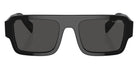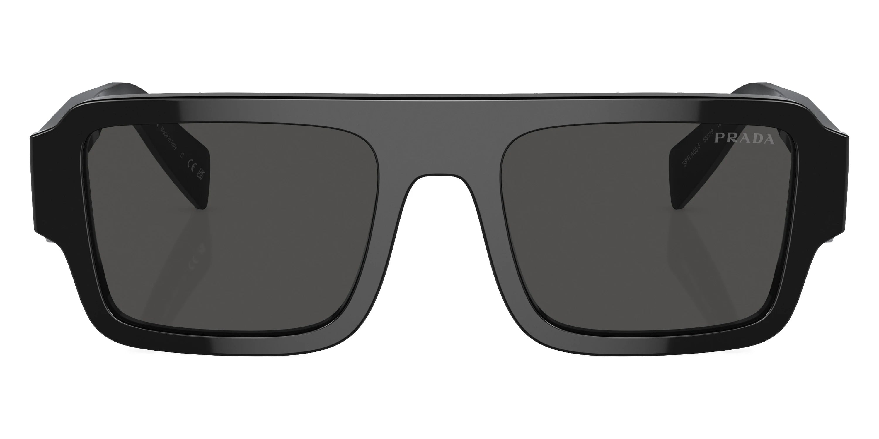 Black (16K08Z) Sunglasses with Dark Gray lenses (Symbole PR A05SF 16K08Z 55) by Prada. Size: 55-19-145, Shape: Rectangle, Material: Acetate.