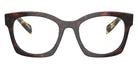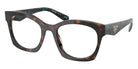 Transparent Brown (17O1O1) Eyeglasses (Symbole PR A05V 17O1O1 50) by Prada. Size: 50-20-140, Shape: Irregular, Material: Acetate.