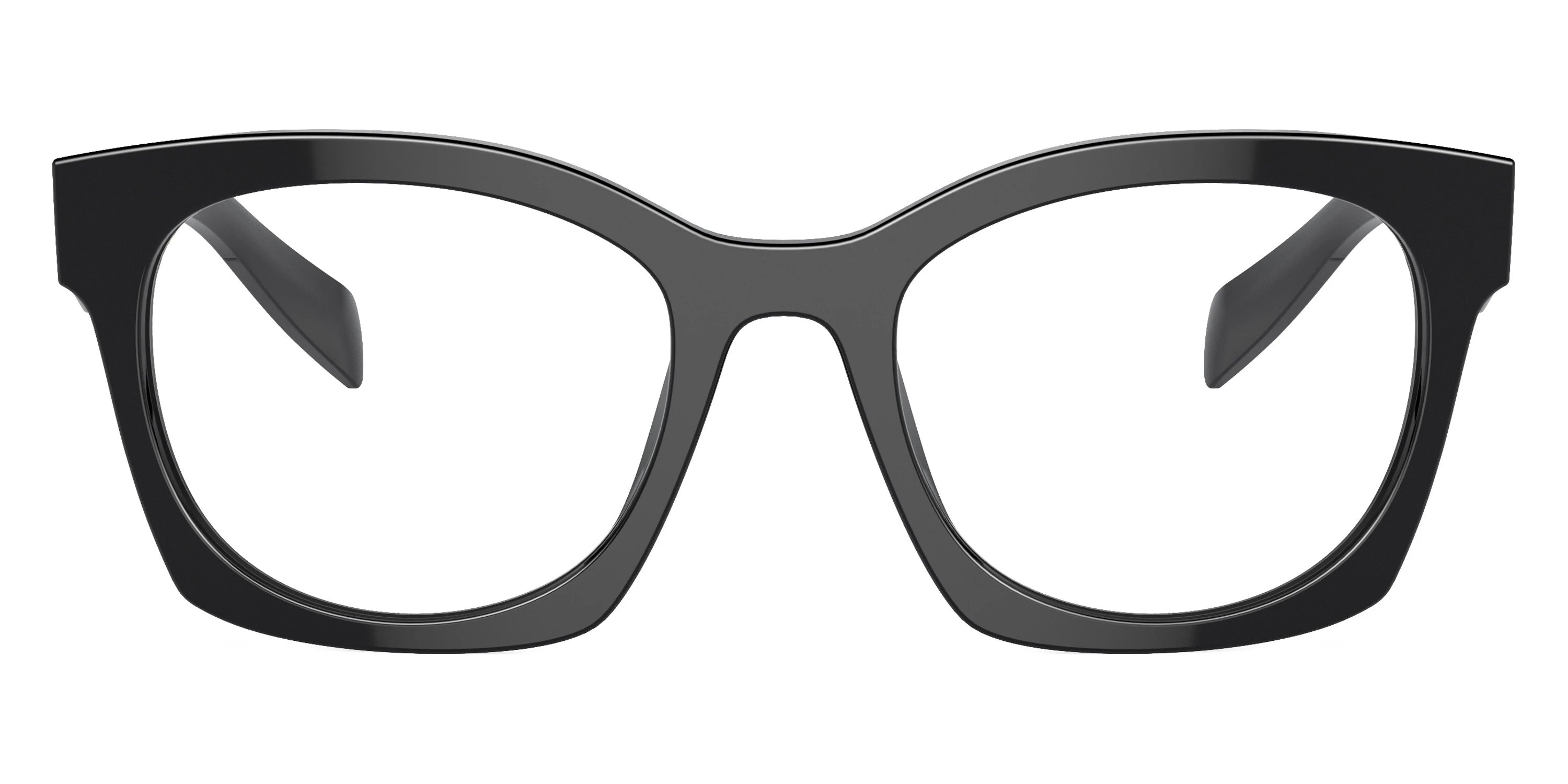 Black (16K1O1) Eyeglasses (Symbole PR A05VF 16K1O1 54) by Prada. Size: 54-18-140, Shape: Irregular, Material: Acetate.