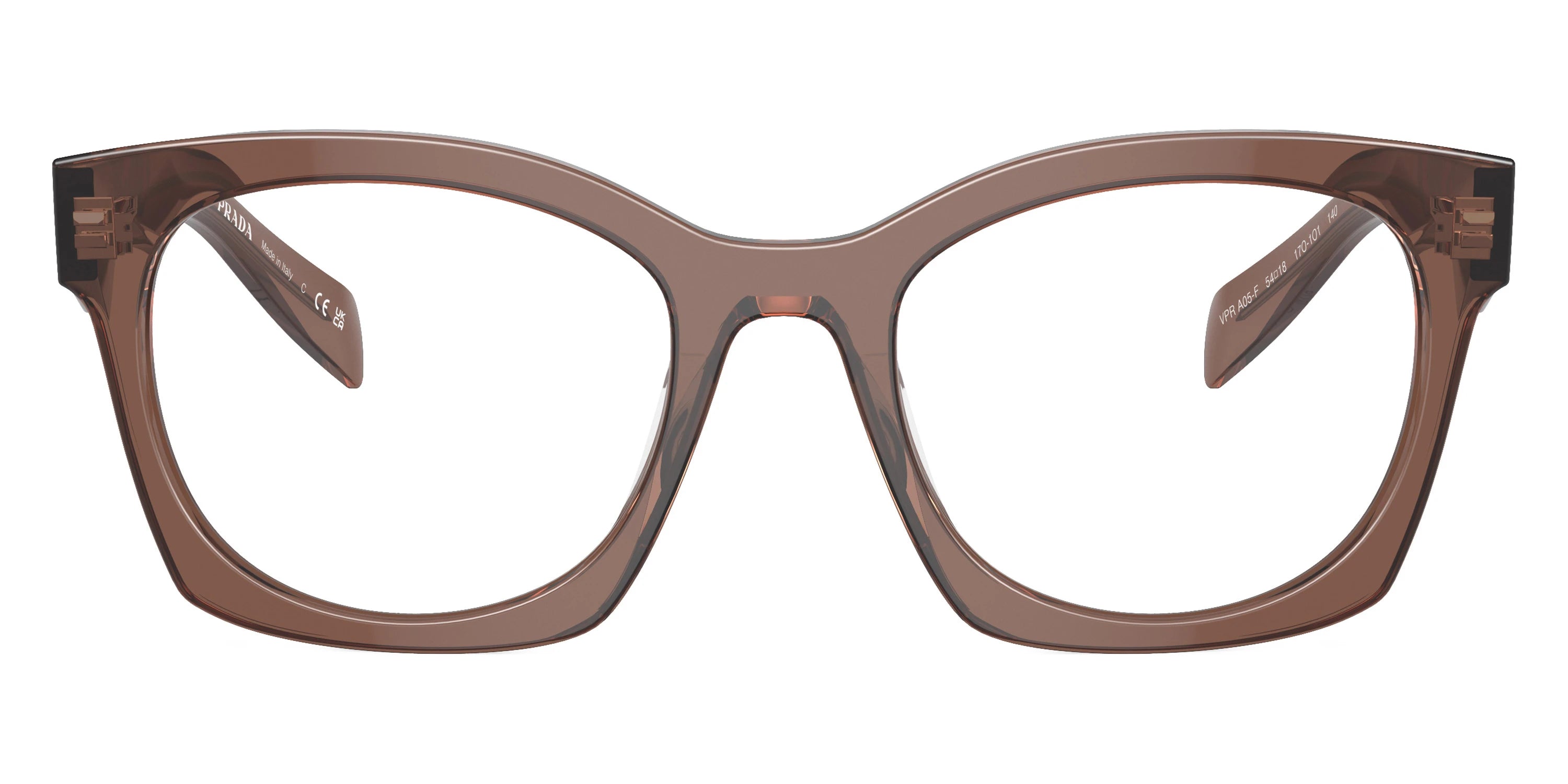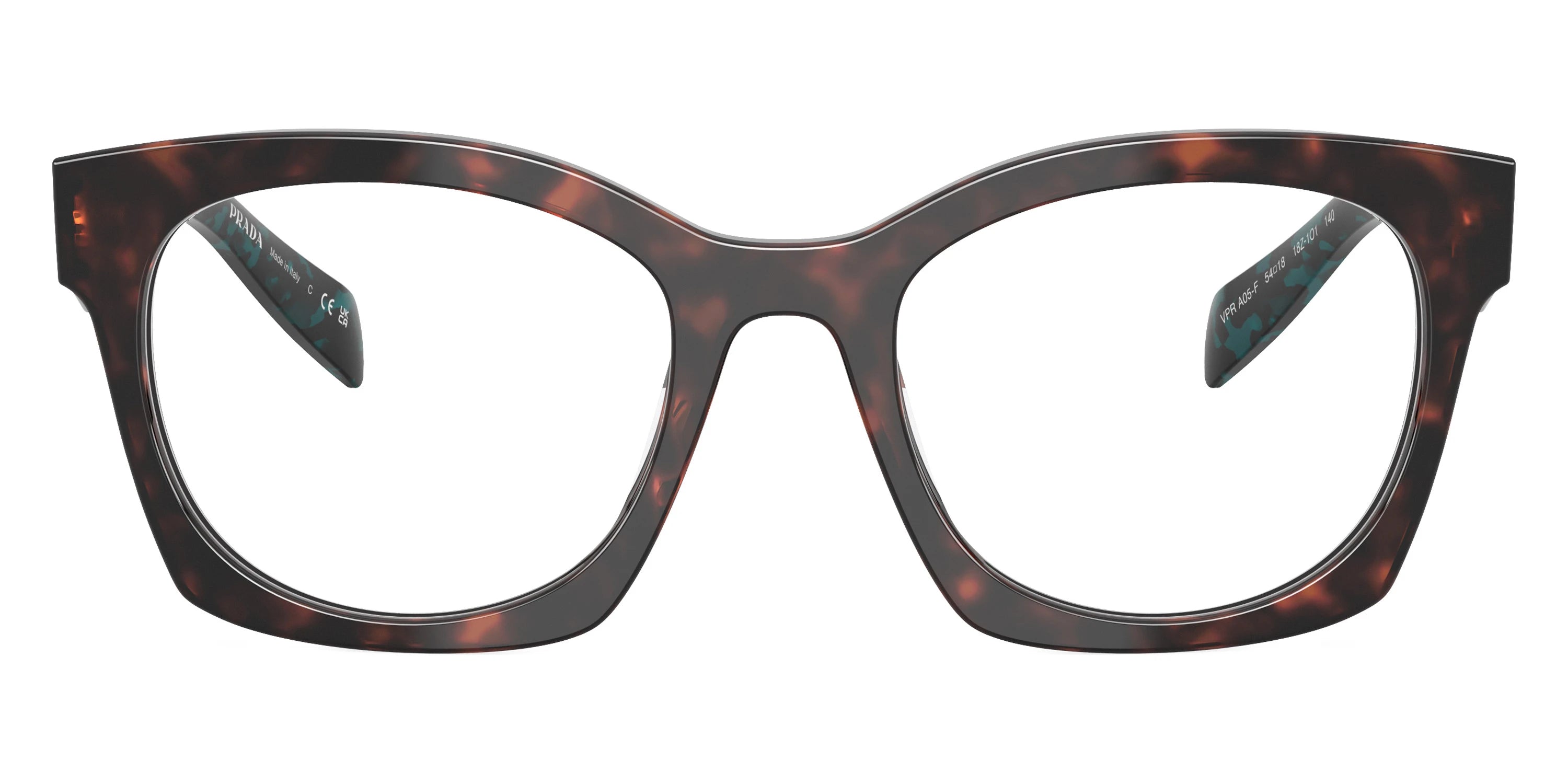 Symbole PR A05VF Eyeglasses by Prada. The irregular shape design feature a full rim acetate frame. This model is available in four different color combinations and sizes. Prada is a synonym for style. It is one of the few brands which anticipates aesthetic trends and dictates its own rules in the fashion market.The brand stands apart with all products from clothing to eyewear which are always in vogue. Prada eyeglasses are elegant, fashion-forward and impossibly chic. The brand annually pleases its fans with new eyewear collections which highlight the personality and style of the prominent fashion house. Millions of fashionistas dream of Prada eyeglasses featuring graceful shapes, excellent fit and comfortable wearing.