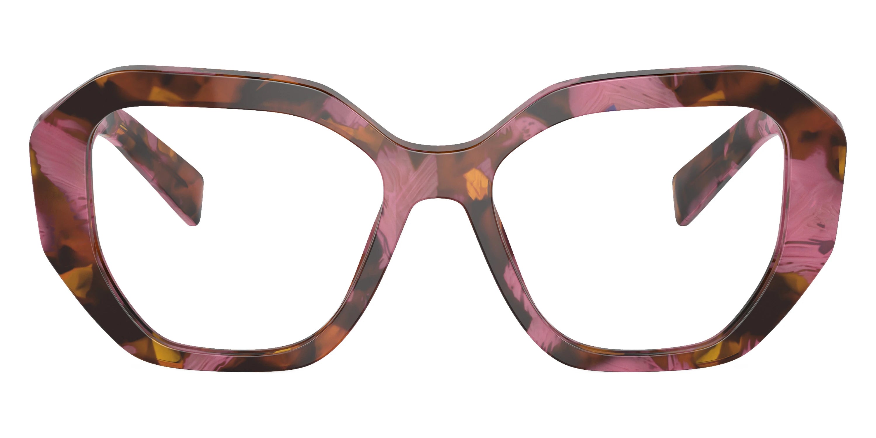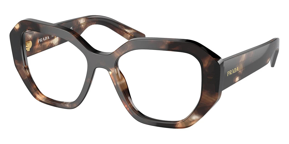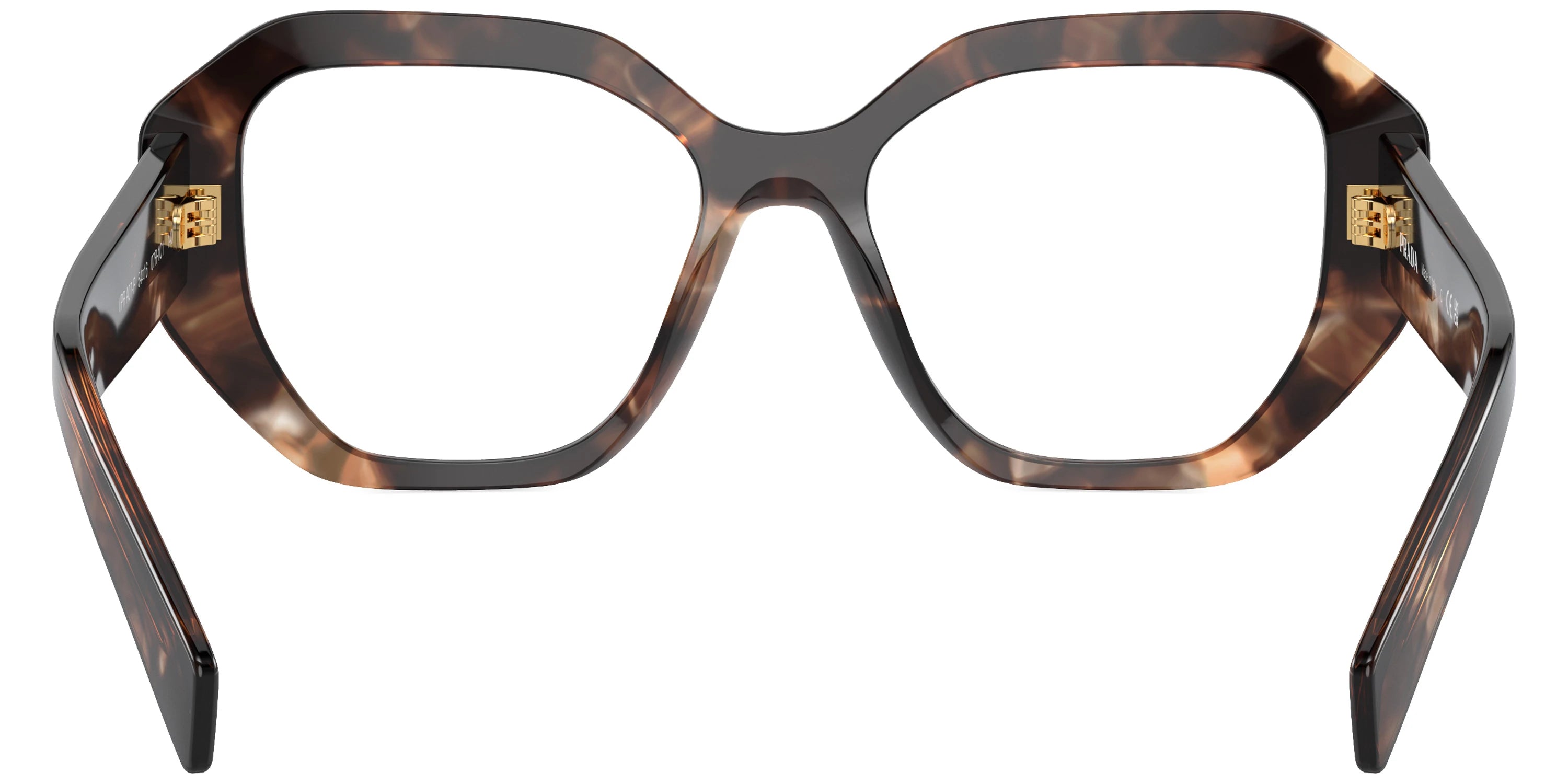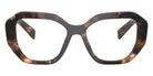 Havana Caramel (07R1O1) Eyeglasses (PR A07VF 07R1O1 54) by Prada. Size: 54-16-140, Shape: Irregular, Material: Acetate.